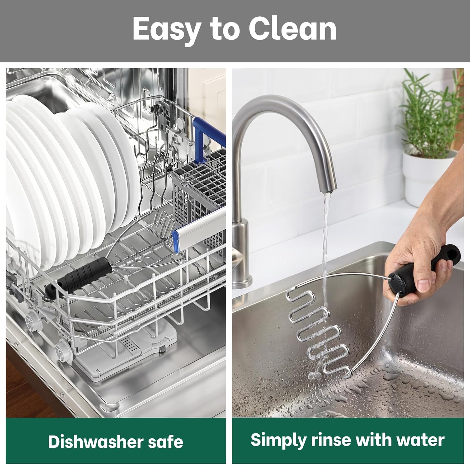 - Easy to Wash: This potato masher is designed for hassle-free cleaning, its sturdy and simple construction resists food buildup and is both dishwasher-safe and easy to rinse clean with water. A must-have for home chefs who demand efficiency, ease of use, and ease to care every time