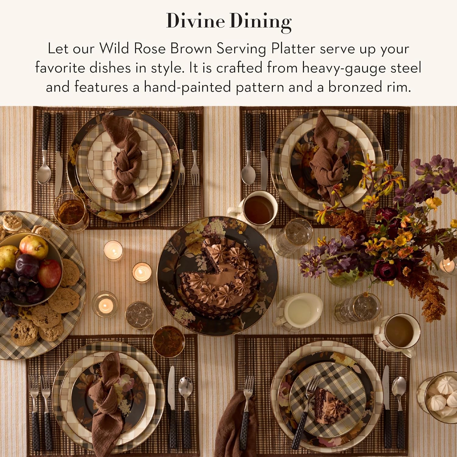 MACKENZIE-CHILDS Enamel Serving Platter, Decorative Serving Platter for Food, 16 Inches, Wild Rose Brown