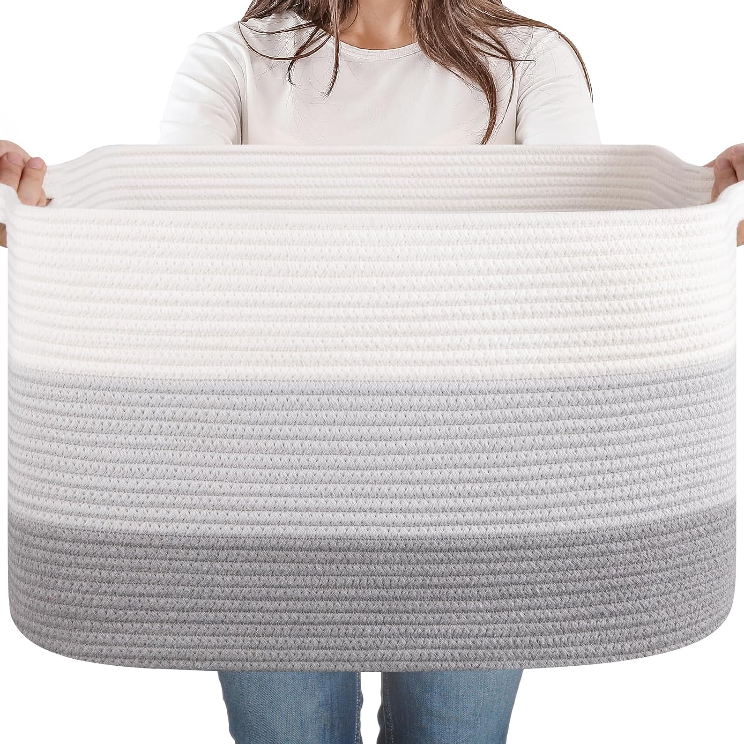 65L Large Storage Basket, Cotton Rope Woven Blanket Basket, Toy Storage for Baby Room, Living Room, Gradient Grey