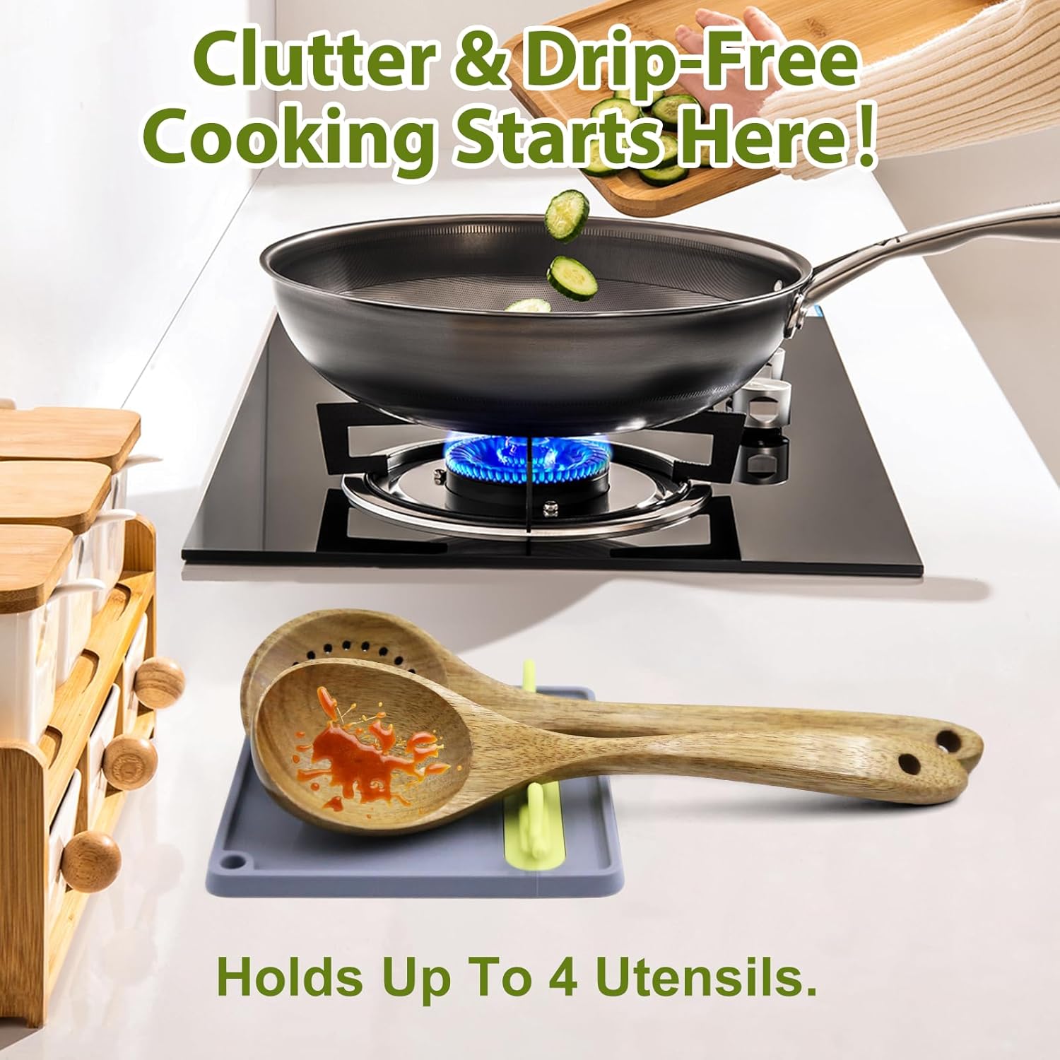 - Colorful Options to Brighten Your Kitchen:With vibrant colors like gray + blue, this silicone spoon rest adds a pop of color to your kitchen, complementing any style while making cooking more enjoyable.