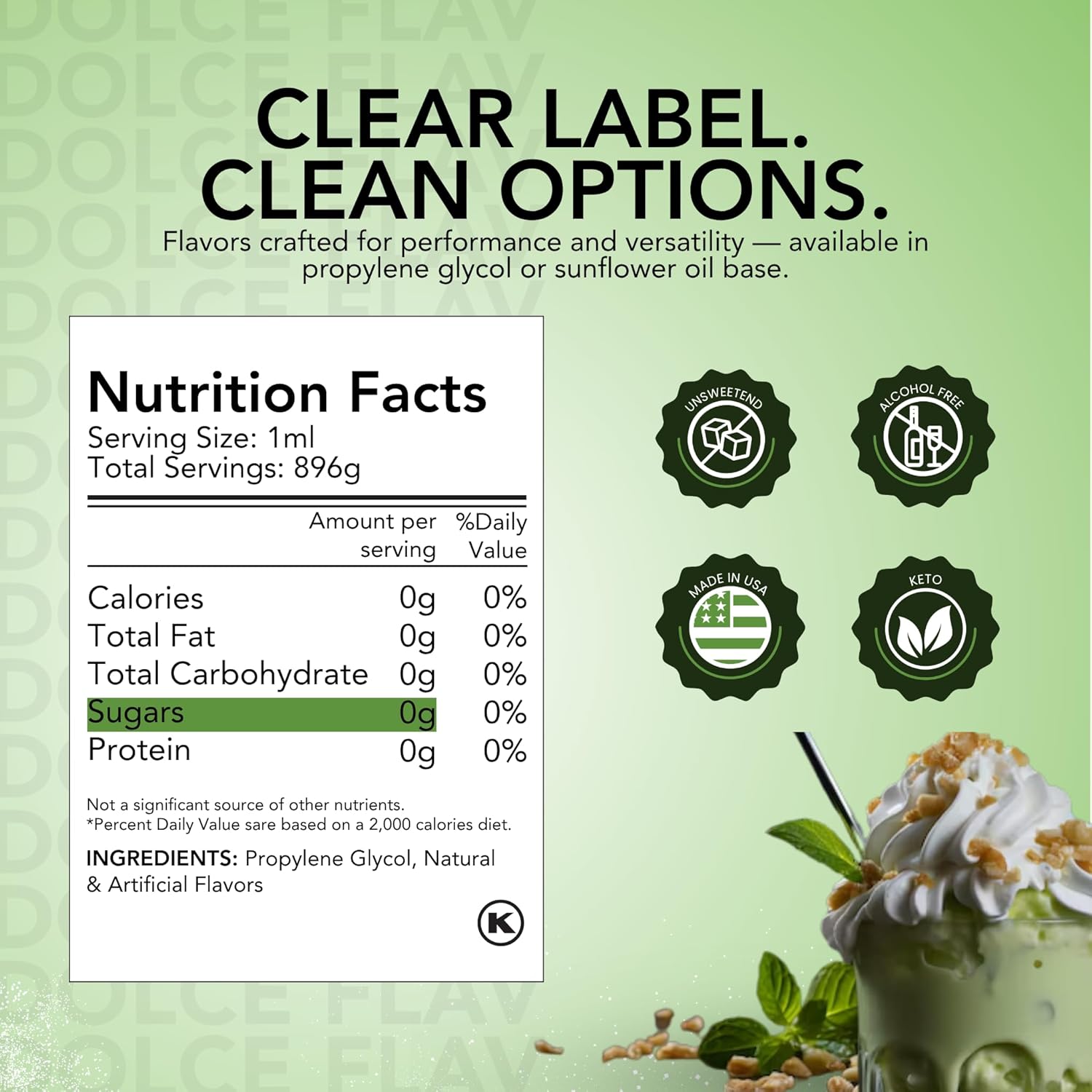 Dolce Flav Pistachio Flavoring – 32 oz. – Premium Flavoring for Ice Cream, Desserts, Boba, Beverages & Baked Goods | Ideal for Restaurants, Bakeries & Coffee Shops