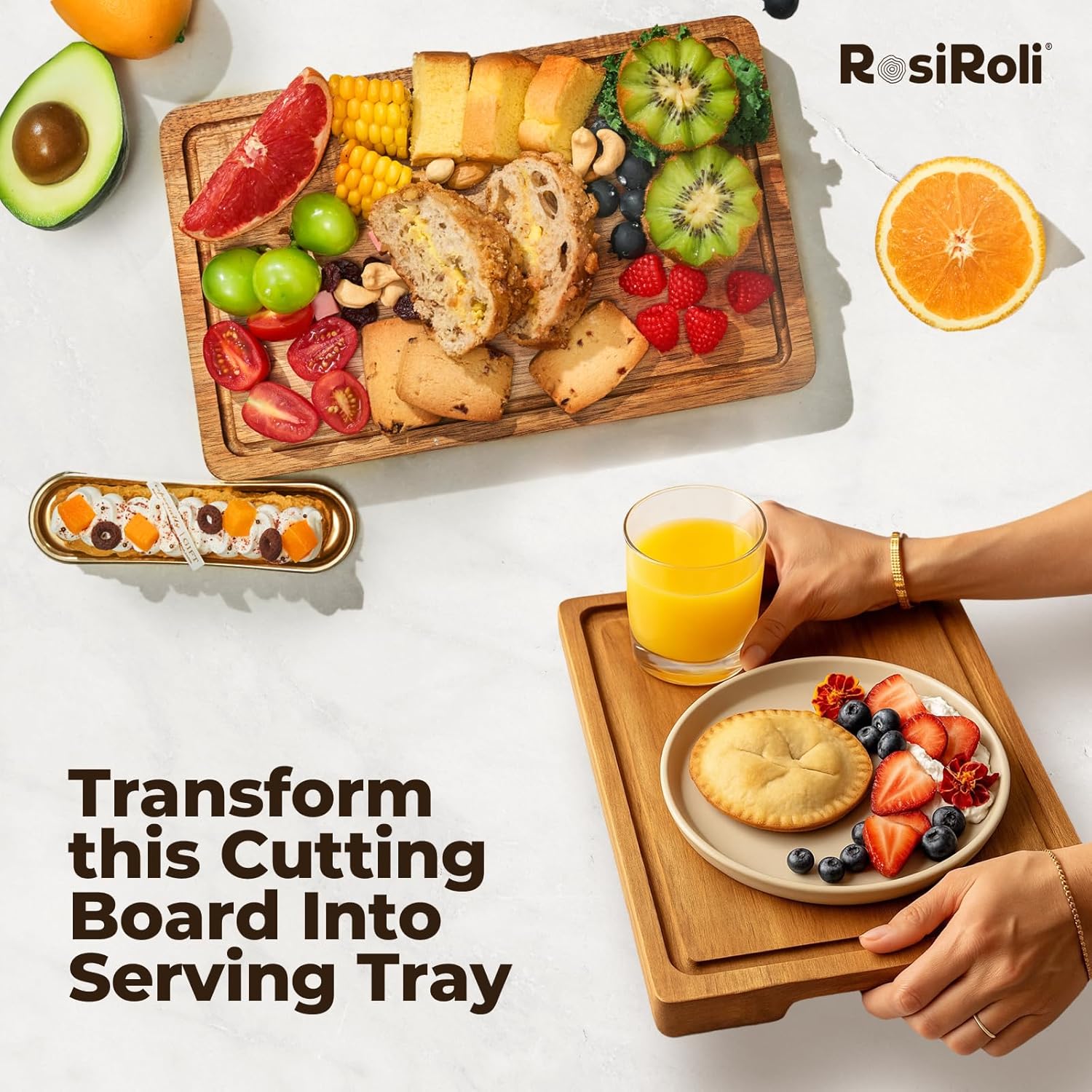 Acacia Wood Cutting Board for Kitchen - 1 inch Thick FSC Certified Wood Charcuterie Cheese Board with Side Handles and Juice Grooves, Wooden Chopping Block for Meat and Veggies, 17x12 inch