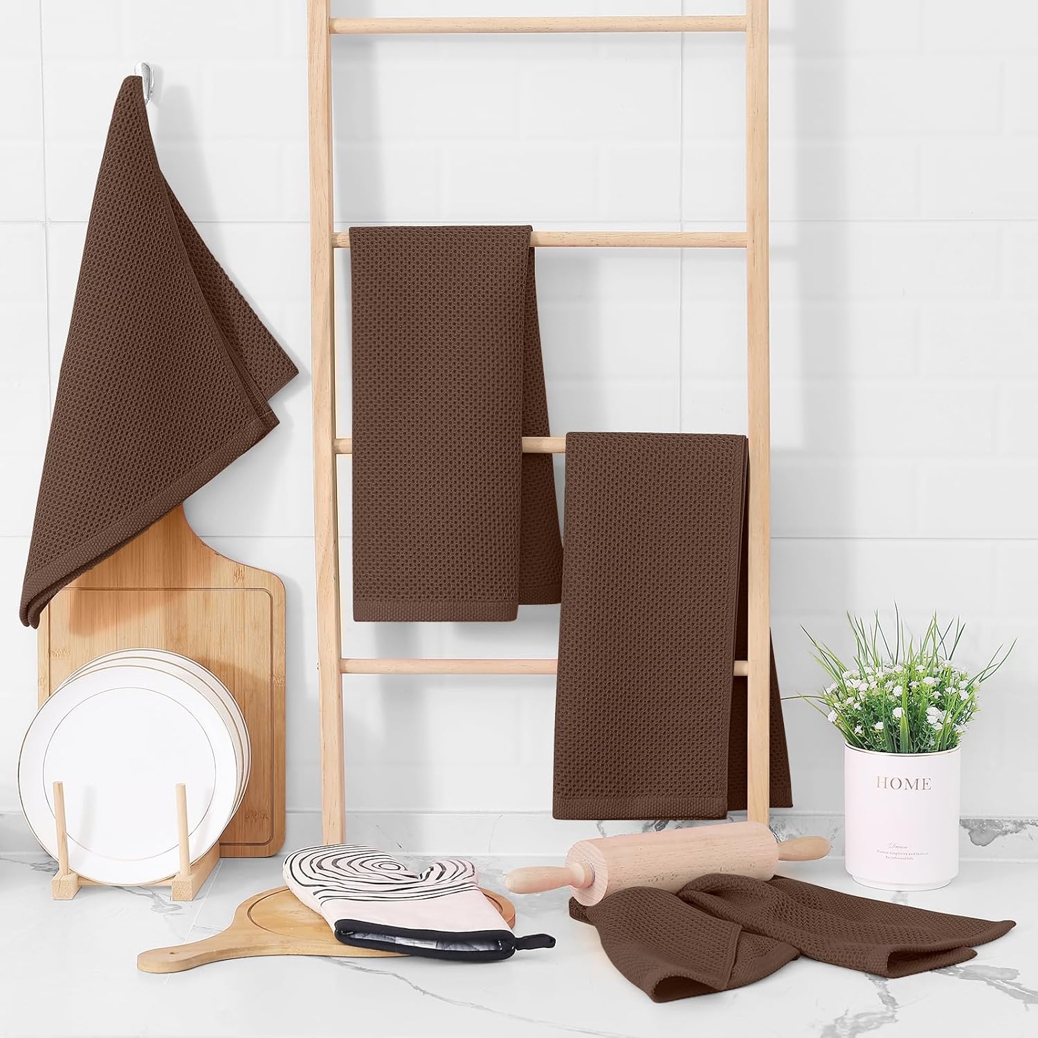 Homaxy 100% Cotton Waffle Weave Kitchen Dish Towels, Ultra Soft Absorbent Quick Drying Cleaning Towel, 13 x 28 Inches, 4-Pack, Coffee