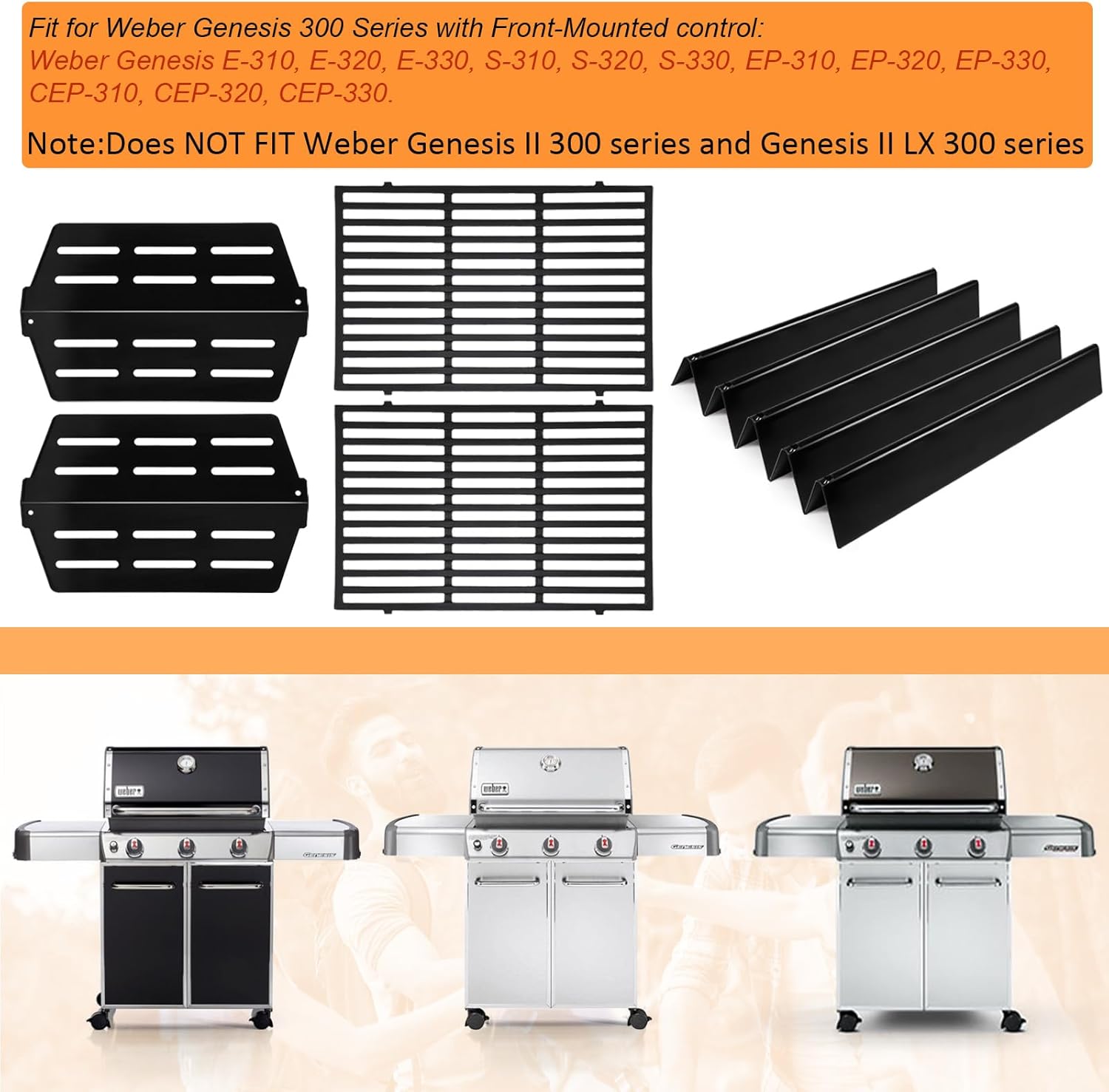 - Compatible Models:Grill replacement parts kit perfectly fits for Weber Genesis 300 Series with Front-Mounted control: Weber Genesis E-310, E-320, E-330, S-310, S-320, S-330, EP-310, EP-320, EP-330, CEP-310, CEP-320, CEP-330.---Note:Does NOT FIT Weber Genesis II 300 series and Genesis II LX 300 series