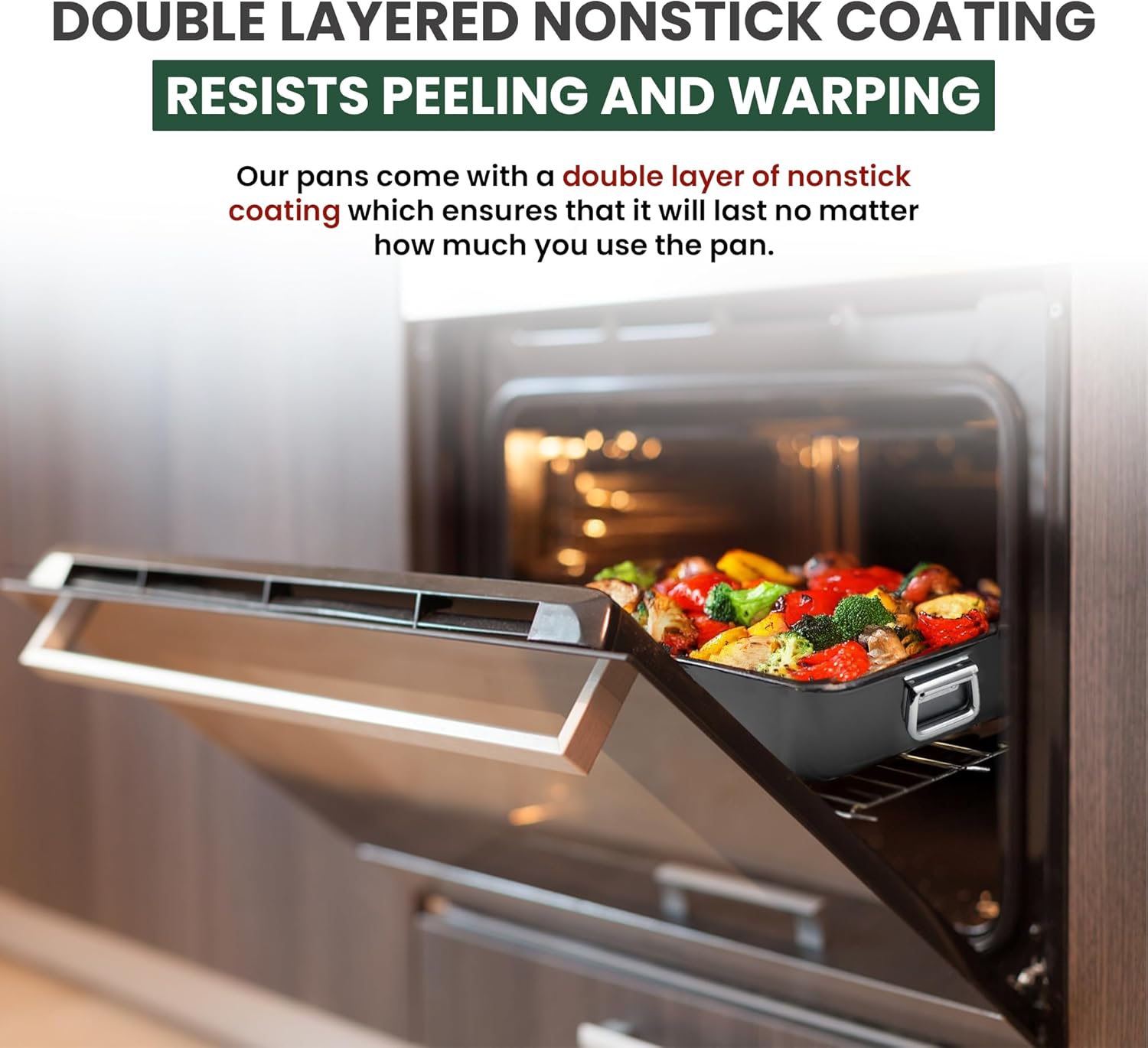 - EASY WASHING: The nonstick coating on our oven pans for cooking makes washing a breeze by simply scrubbing with a soft sponge and warm soapy water and it's dishwasher safe too