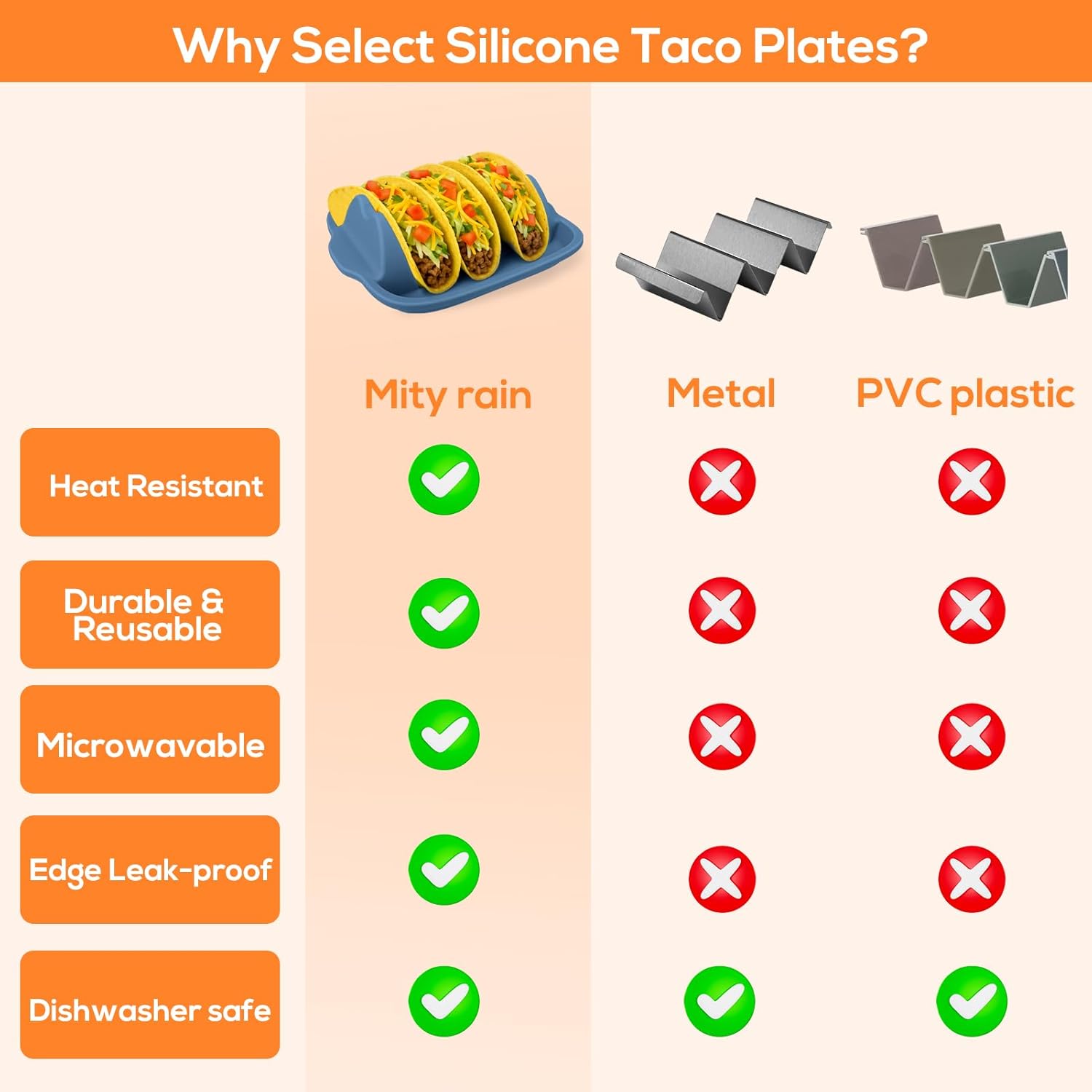 - Premium Food-Grade Silicone: Crafted with 100% food-grade silicone, our taco holder plates is BPA-free, heat-resistant up to 446°F (230°C). It retains structural integrity in microwaves, ovens, or dishwashers. The non-toxic, odor-resistant material ensures zero chemical leaching, making it ideal for family meals and kids'taco nights.