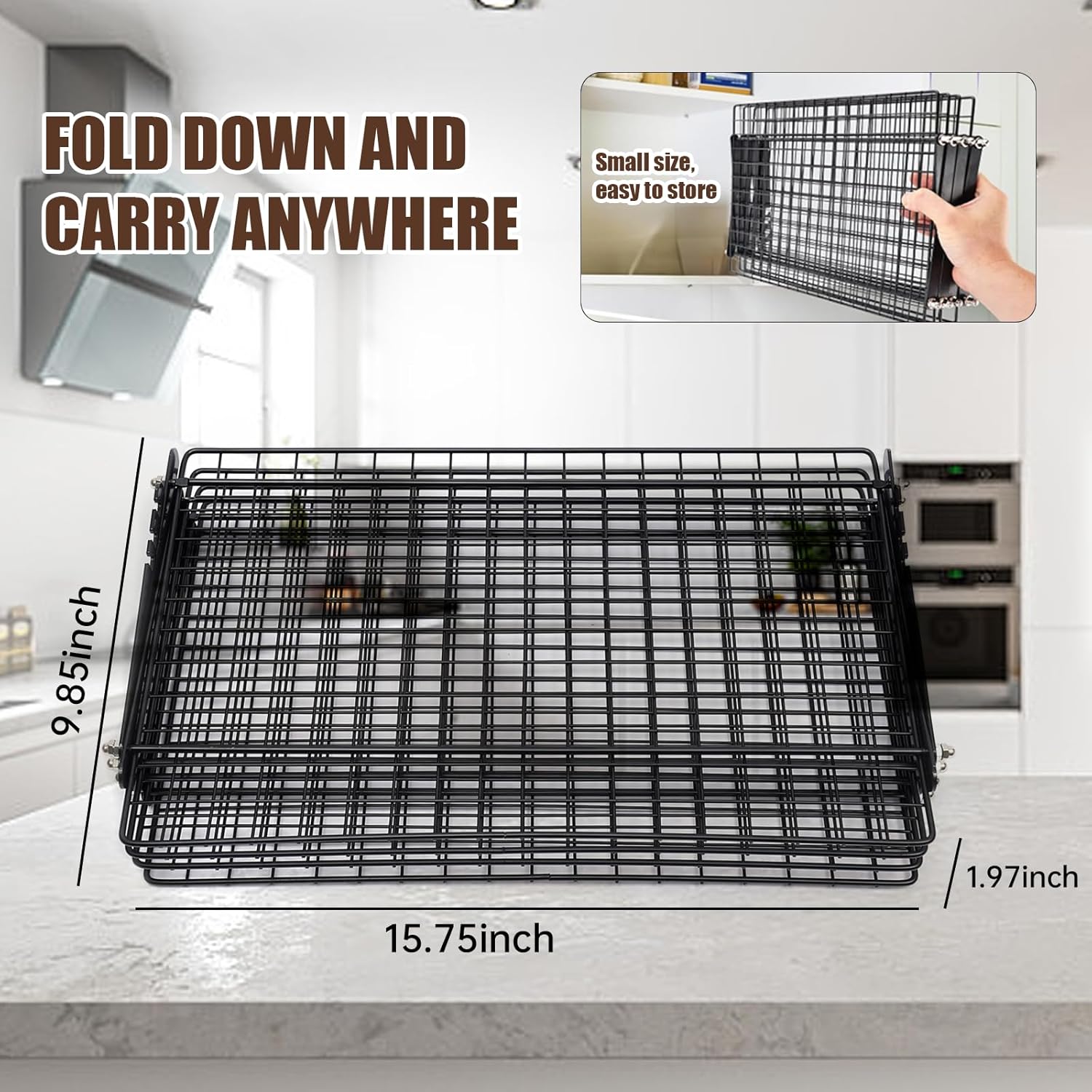- FOLD DOWN AND CARRY ANYWHERE: Designed for portability, this rack folds flat to just 1.97" thick and weighs only 4.41 lbs. Ideal for tailgating, road trips, and compact kitchens where space-saving tools are a must.