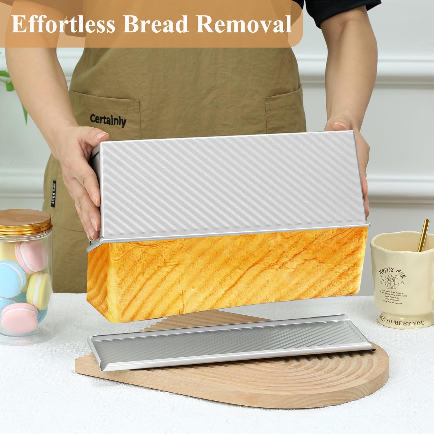 - Premium Nonstick & Easy Clean: Enhanced nonstick coating ensures effortless bread release from bread pan with lid. Maintains integrity through 500+ bakes. Hand wash for quick cleanup – ideal for daily homemade bread baking.