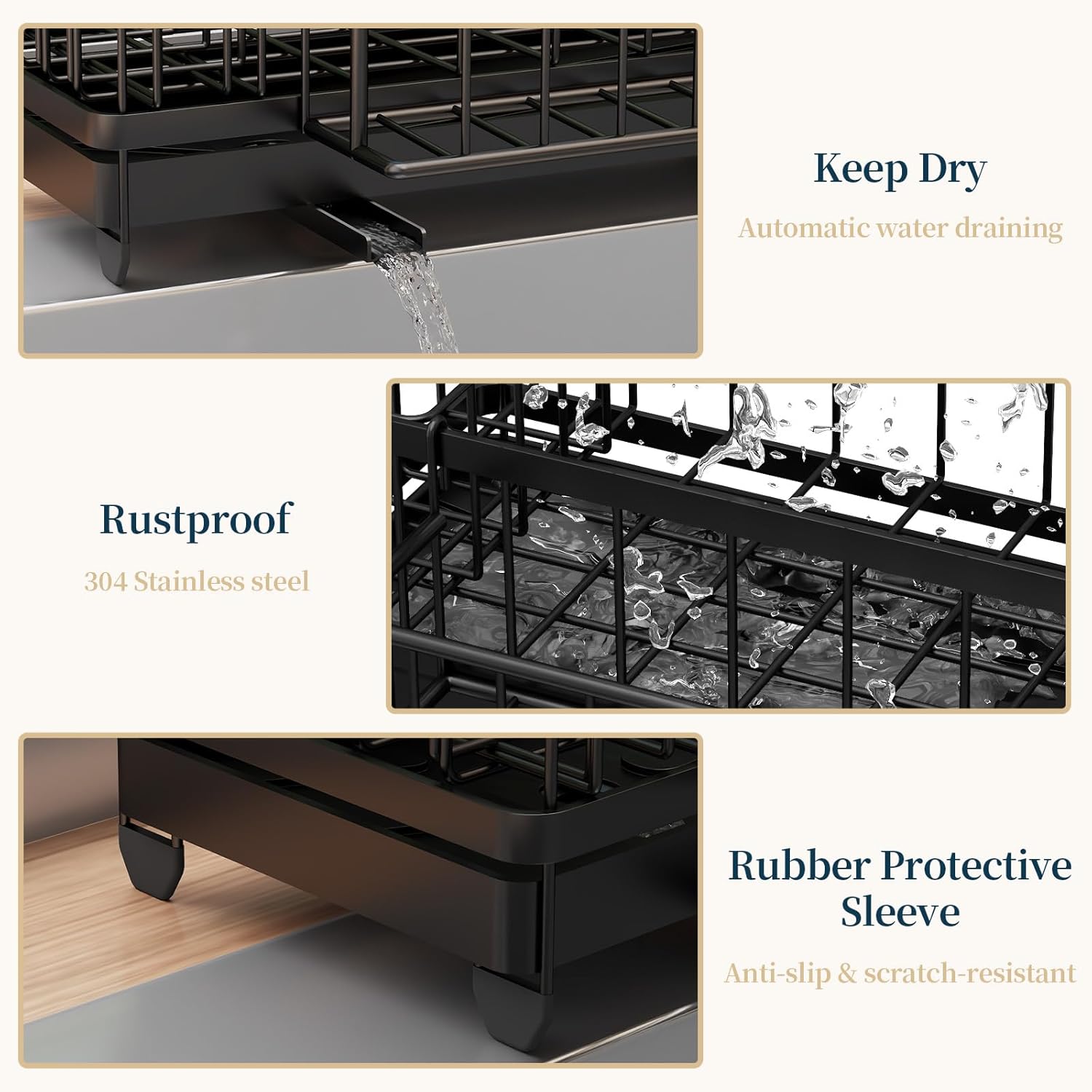 - [Anti-Slip Rubber Feet]: The bottom of the kitchen sink sponge holder is equipped with anti-slip rubber pads on each leg, providing a secure grip that prevents sliding or tipping over. Whether placed on a wet kitchen sink sponge holder or a dry counter, the added friction ensures stability and peace of mind. A smart solution for safer, clutter-free kitchen soap holder organization