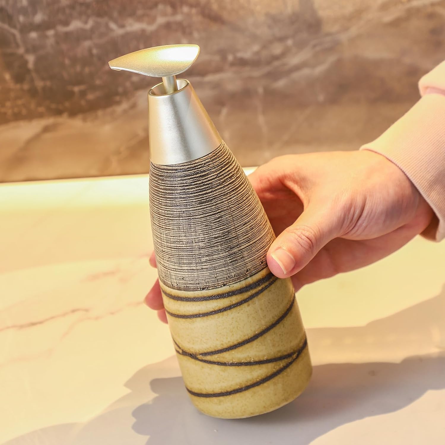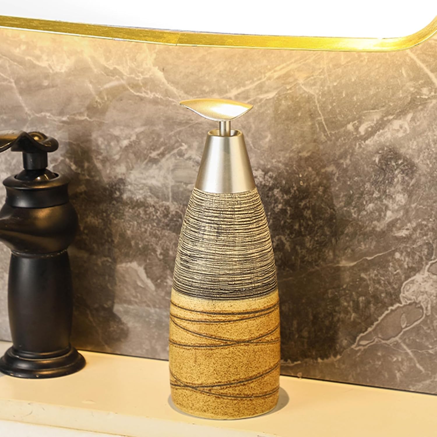 - 🎨 Unique Artistic Design Crafted with a premium glaze finish and subtle texture details, this ceramic soap dispenser adds an elegant accent to bathrooms, washrooms, vanity countertops, or powder rooms. Its versatile look complements everything from modern to minimalist interiors.