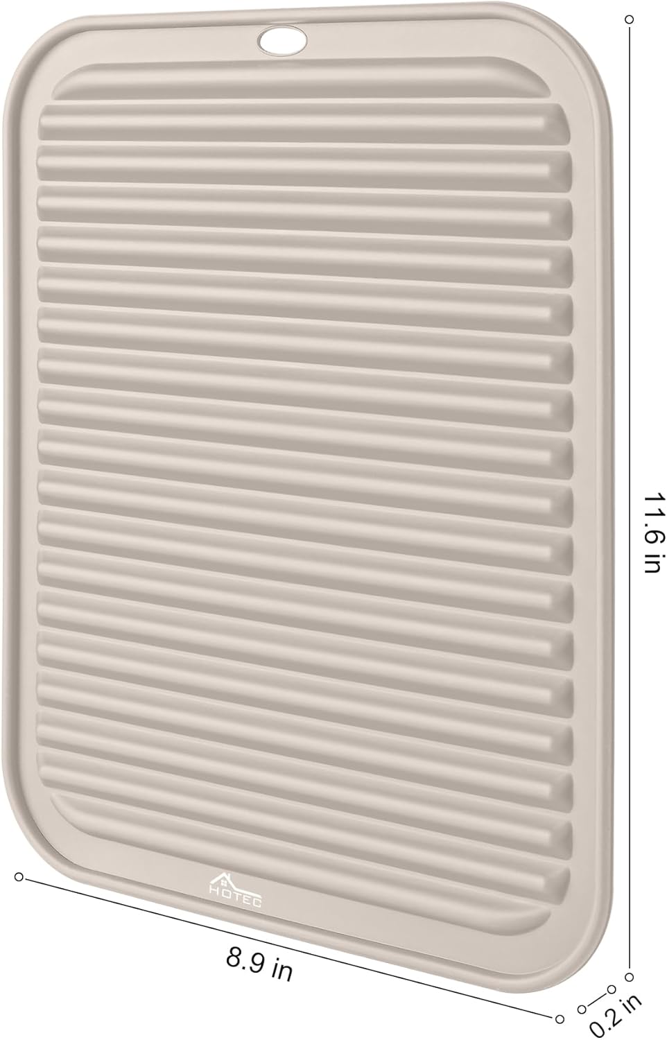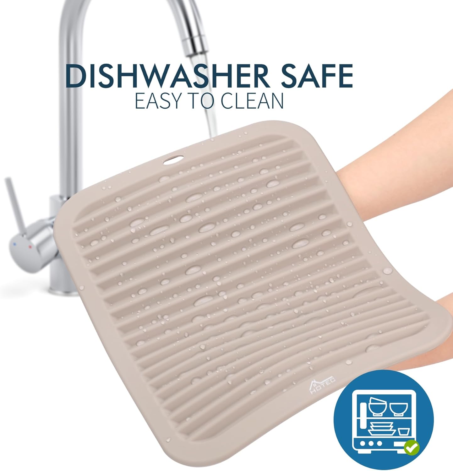 - Wide Variety of Uses: Non-slip, flexible and soft, great choice for drying mat or placemat,like if necessary, somewhere to rest errant spoons,even act as excellent dish mats. if you want something nice-looking protecting your counter and it perfectly fits the bill. The silicone is easily wiped after spots or spills; the double-sided grooves allow air space so the mat grips well and is not heat conducive.