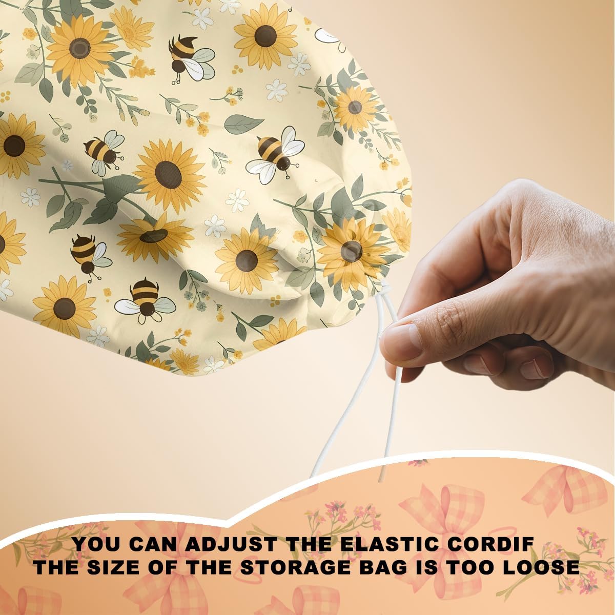2Pcs Cute Bee Plastic Bag Holder, Wall Mount Grocery Bag Holder for Plastic Bags, Vintage Rustic Sunflower Reusable Grocery Bags Storage Dispenser for Home Kitchen Pantry, Sunflower Gifts for Women