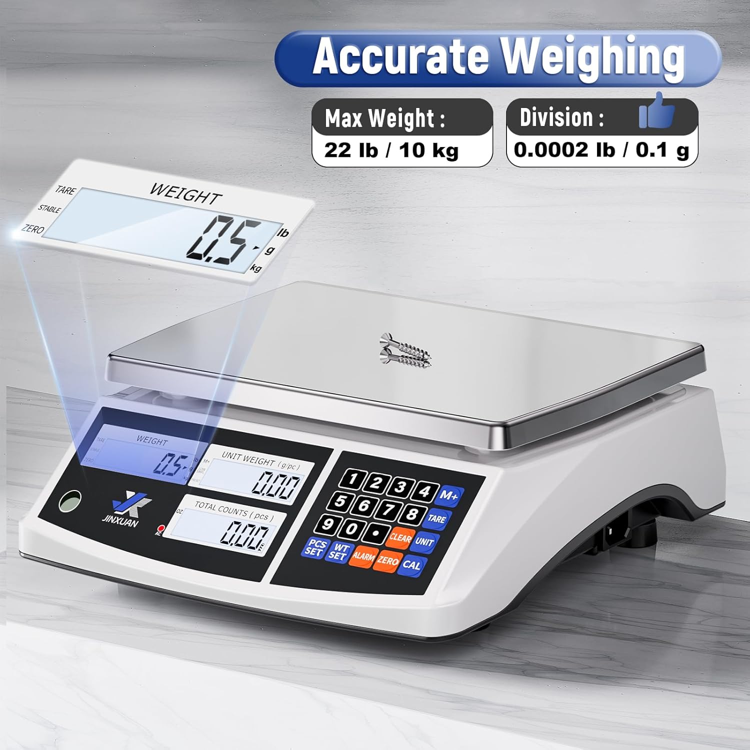 Industrial Price Counting Scale, 22lb/10kg Digital Bench Scale Inventory Scale for Small Parts Coin Scale, lb/g/kg/oz Units Electronic Scale with Backlight LCD Display, Large Platform, 0.0002lb/0.1g