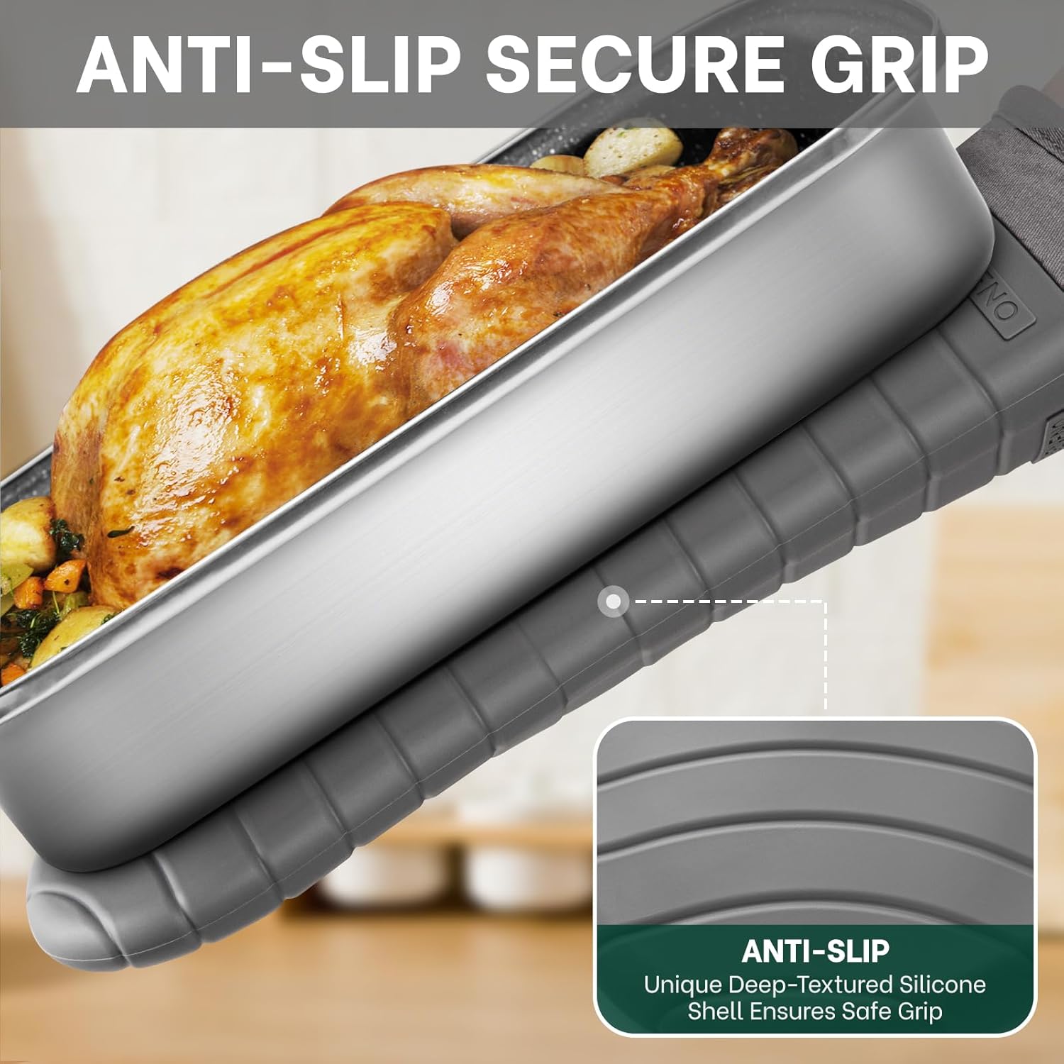 - Superior Heat Resistant & Waterproof: Crafted with high-quality BPA-free soft silicone, these oven mitts provides superior heat resistant up to 500Β°F with reliable waterproof shell for repels heat, steam and hot liquid, ensuring safely handling hot baking sheets, grill pans, and cookware straight from the oven or stovetop, no more burn risk of hot liquids, gravies or sauces