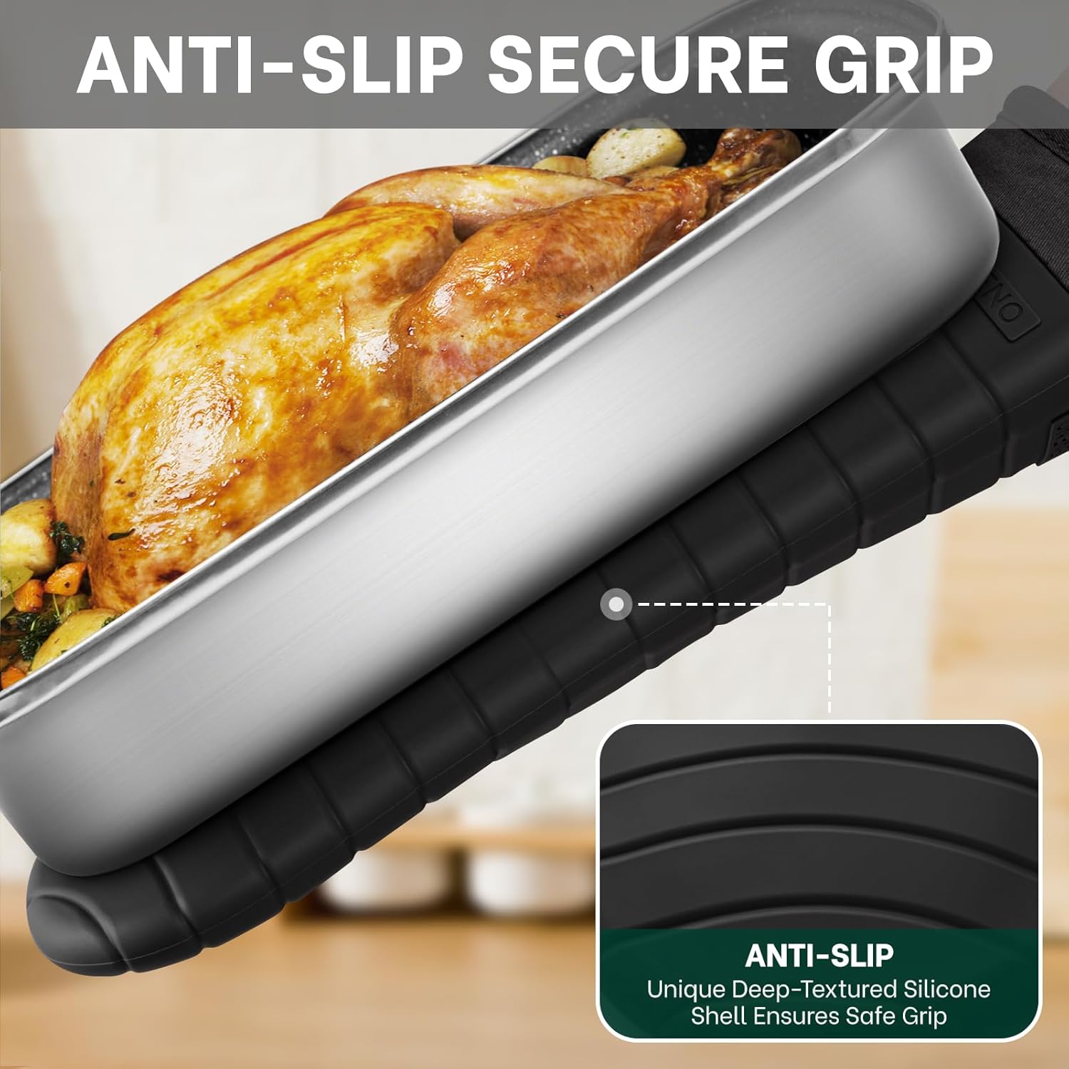 - Superior Heat Resistant & Waterproof: Crafted with high-quality BPA-free soft silicone, these oven mitts provides superior heat resistant up to 500Β°F with reliable waterproof shell for repels heat, steam and hot liquid, ensuring safely handling hot baking sheets, grill pans, and cookware straight from the oven or stovetop, no more burn risk of hot liquids, gravies or sauces
