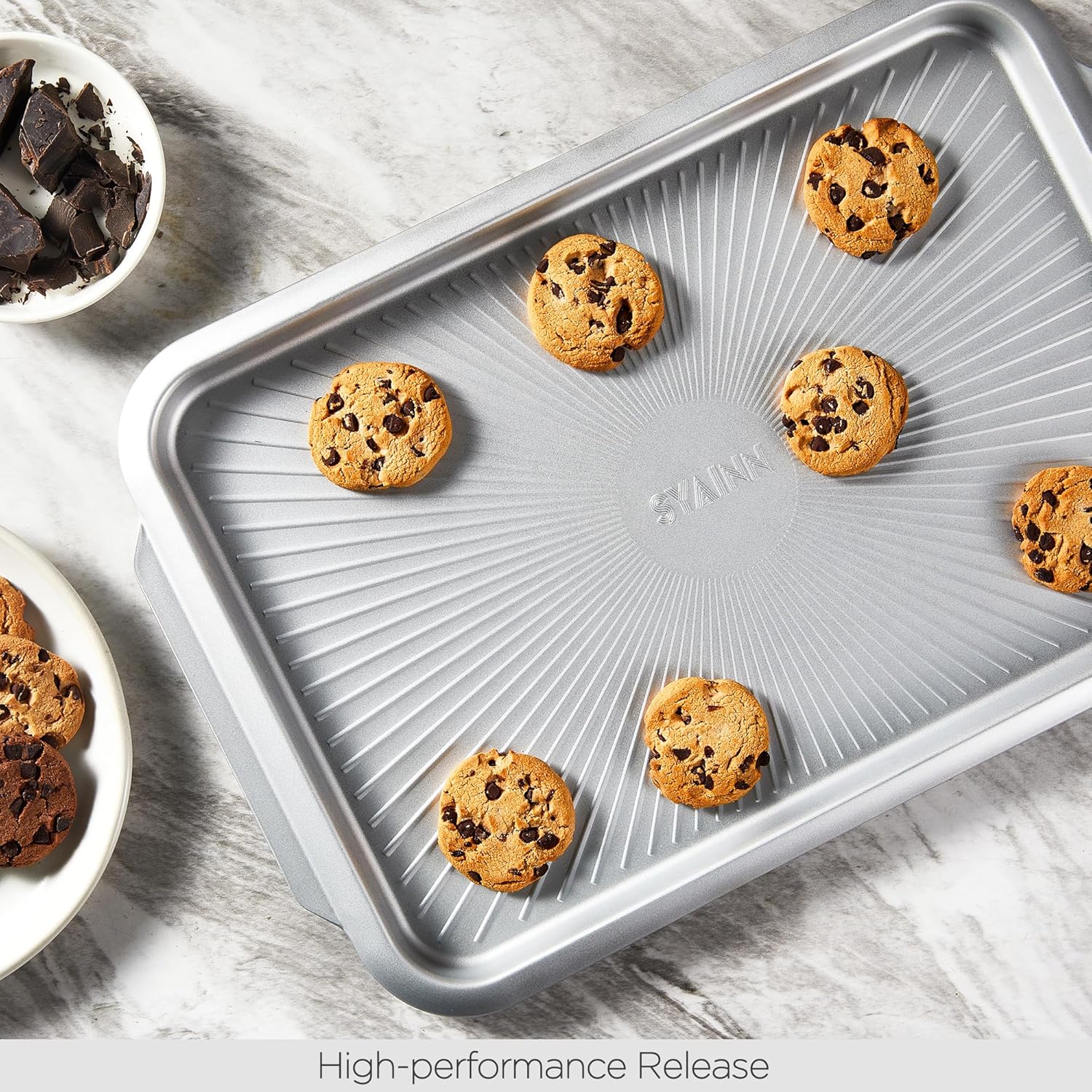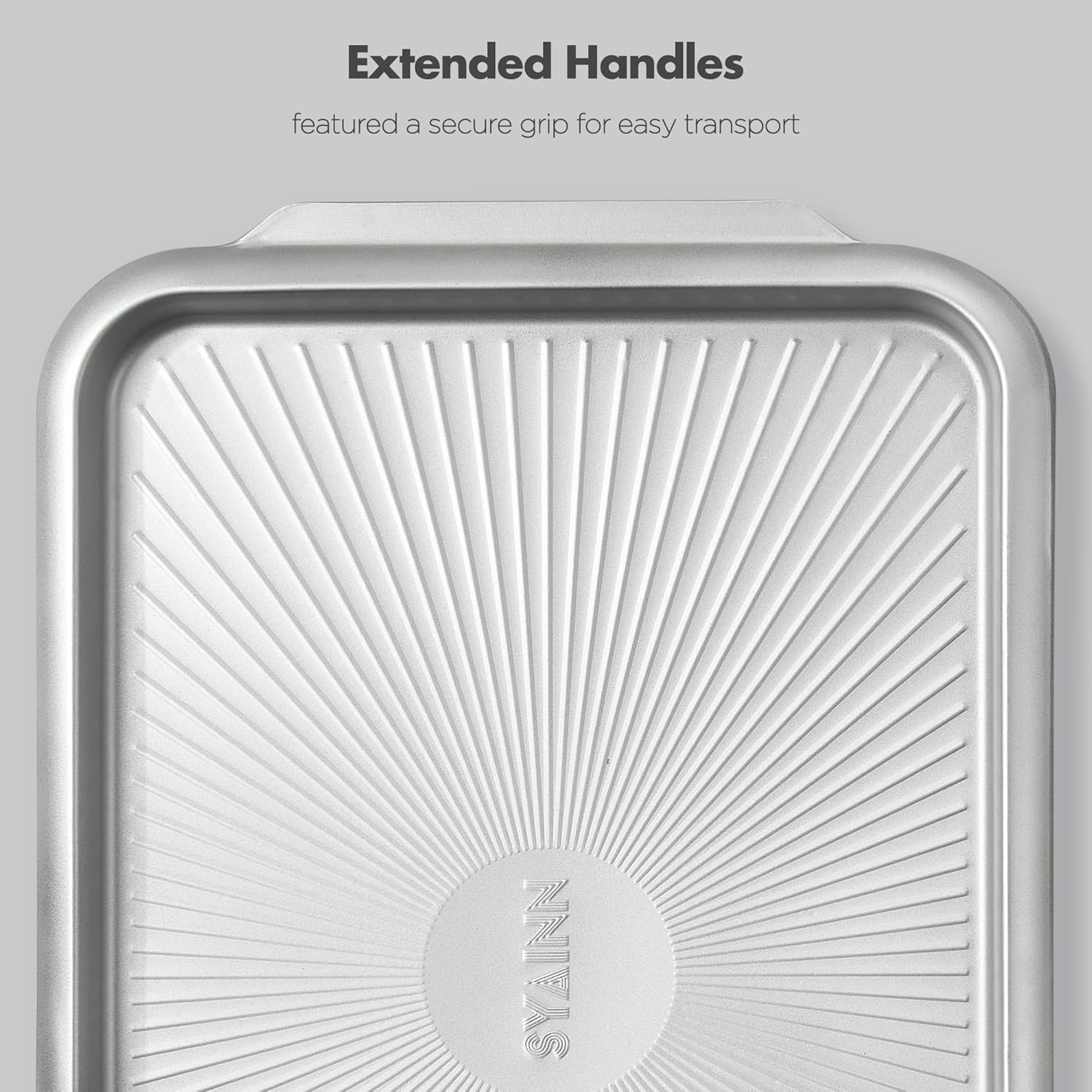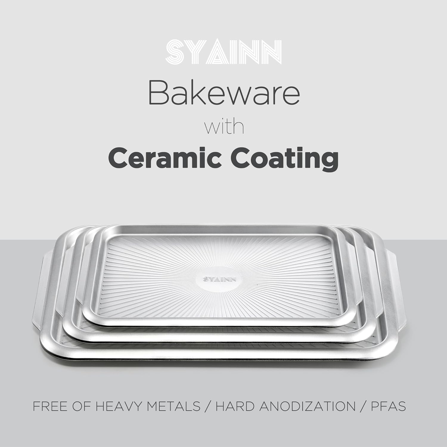 SYAINN Non-stick Ceramic Baking Sheet Set, Pack of 3 - Aluminum Steel Cookie Sheets for Baking - Includes Half/Quarter/Jelly Roll Pans - Warp Resistant, Toxic, PTFE & PFOA Free - Sliver
