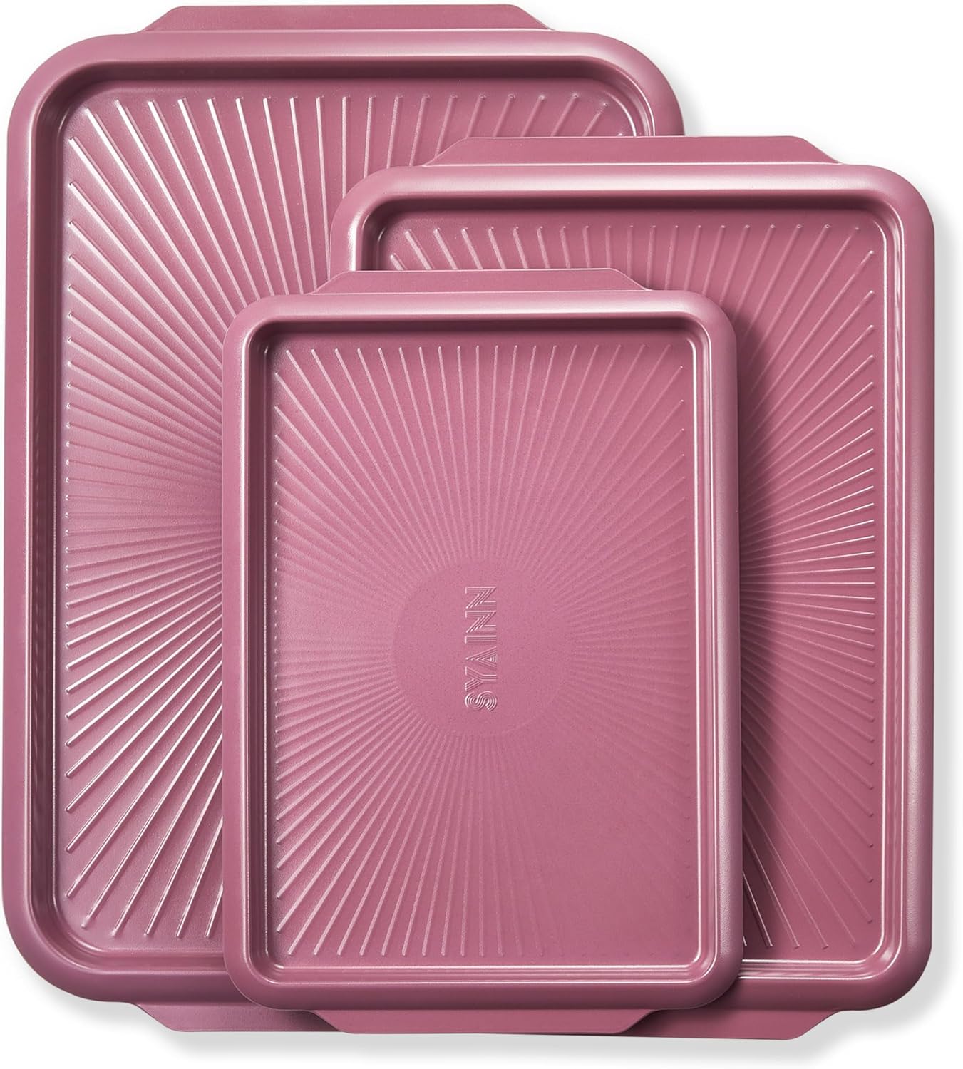 SYAINN Non-stick Ceramic Baking Sheet Set, 3 Pieces- Aluminum Steel Cookie Sheets for Baking-Includes Half/Quarter/Jelly Roll Pans-Warp Resistant, Toxic, PTFE & PFOA Free-Red