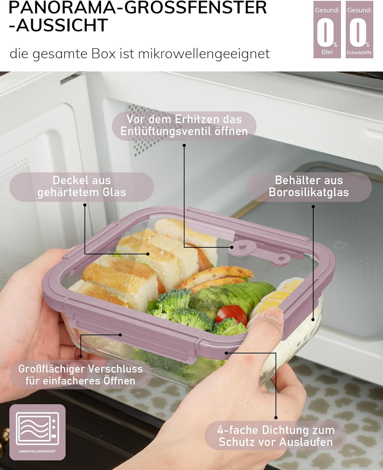 - 【Snap-On Tempered Glass Lids】 The durable tempered glass lids ensure even heating, prevent odor transfer, and are microwave-safe.