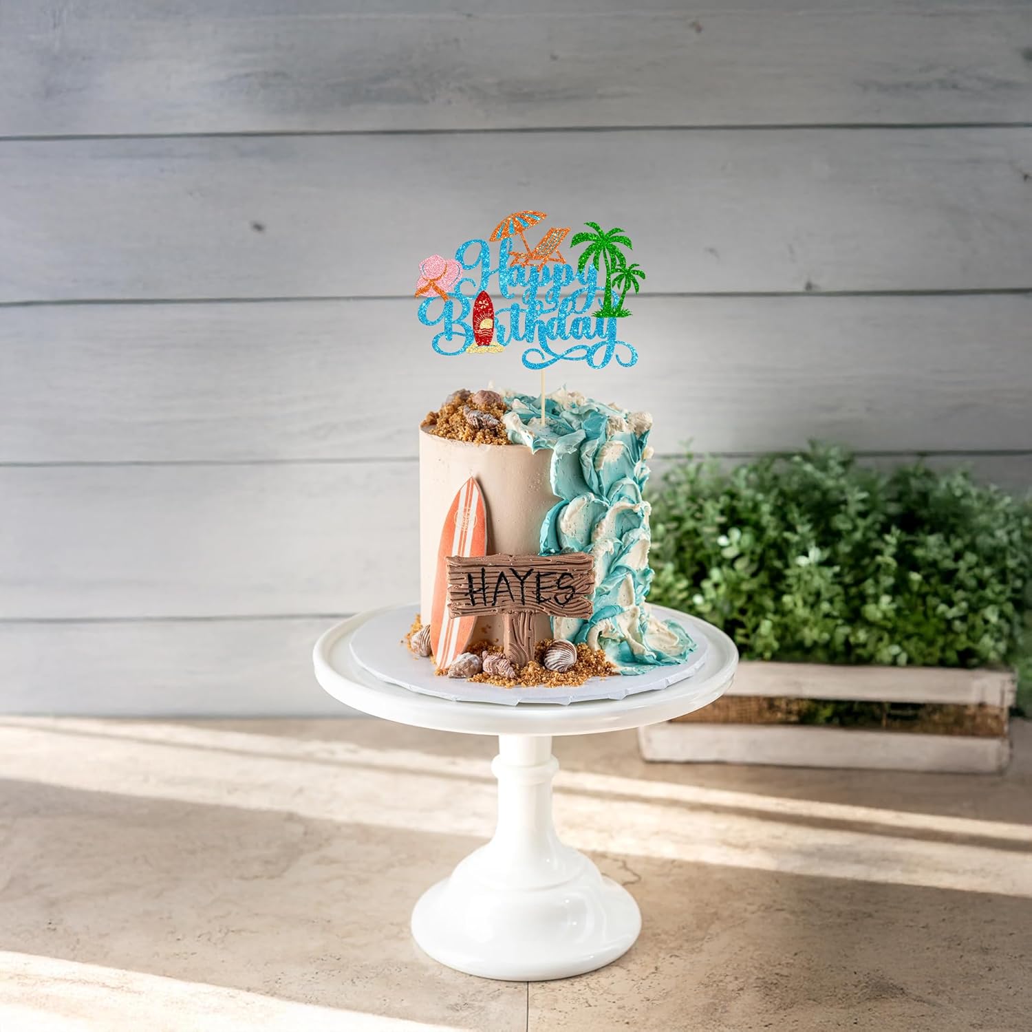 - --Package included: 1Pcs Summer Beach Happy Birthday Cake Topper. Comes with assembled, so you can insert into your cake directly, which make your cake more interesting.