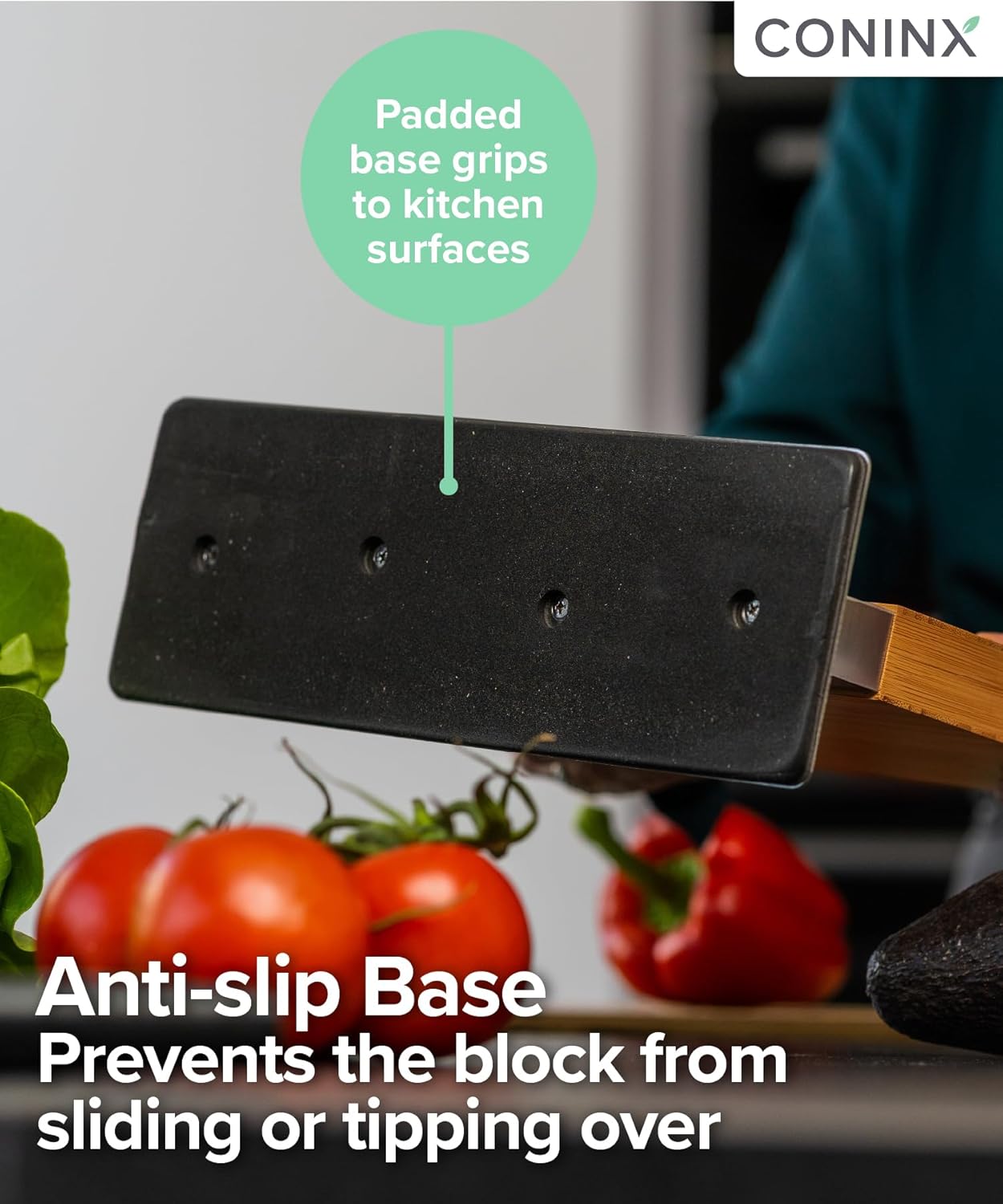 - NON-SLIP BASE FOR MORE SAFETY With anti-slip felt glides on the bottom, the knife block stays stable even on smooth surfaces. For safe, wobble-free use in everyday life