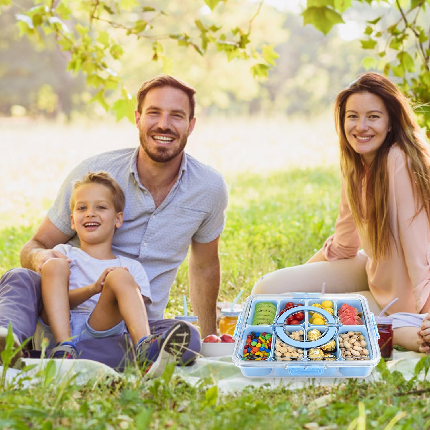 Divided Serving Tray with Lid and Handle,8 Compartments Snacks Box,Snack Fruit Veggie Tray,Portable Platter for Candy Fruits Nuts Snack Party Entertaining Picnic (Blue)