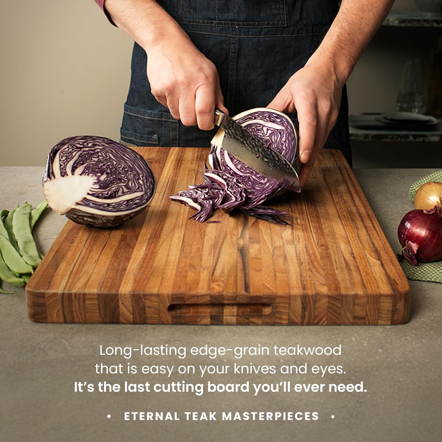 - Cutting Board Made of Real Teakwood: The Teakhaus edge grain cutting board goes beyond function. It’s naturally food-safe with superior moisture endurance. With an edge-grain aesthetics that embodies beauty, sustainability, and longevity, our teak cutting boards are the perfect surface for every task, whether you're slicing fruit, dicing veggies, or plating charcuterie.