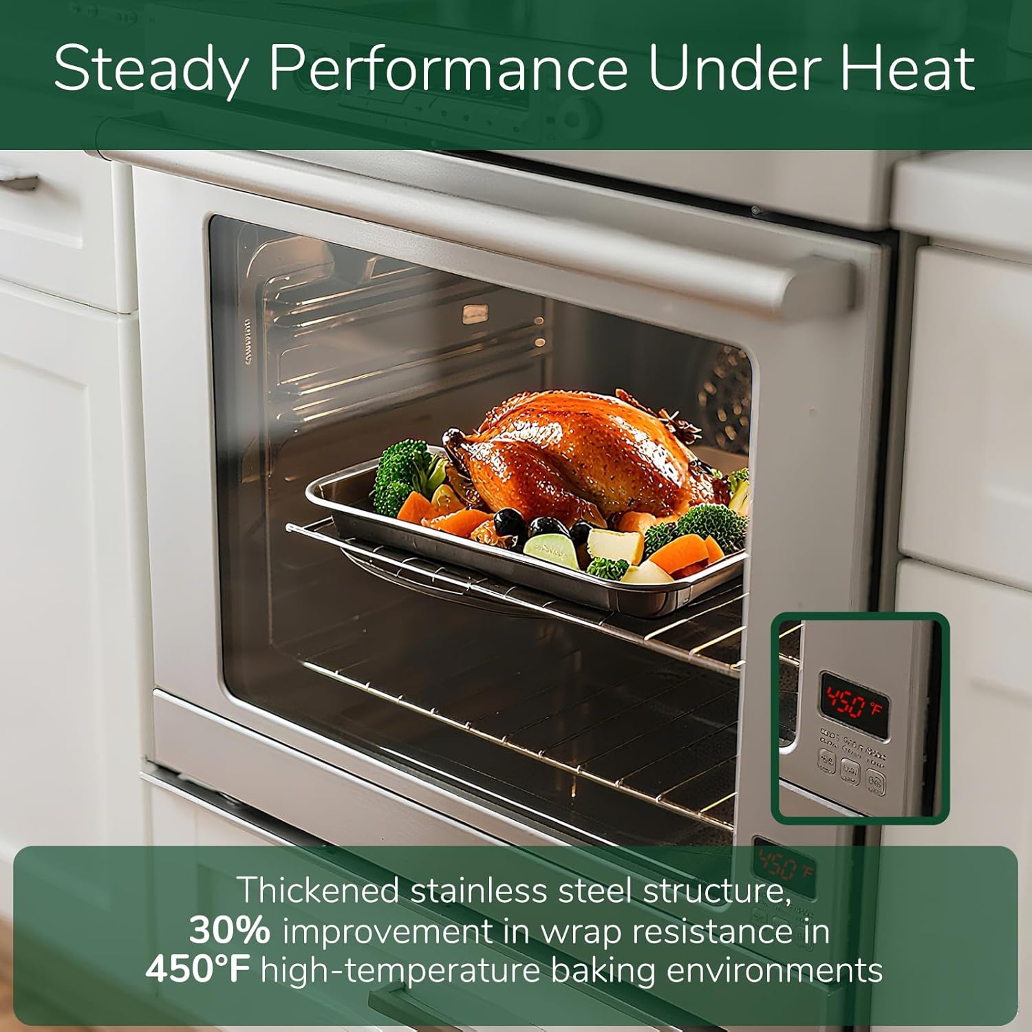 18/0 Stainless Steel Baking Sheet with Cooling Rack, 15.9 Inch Oven-Safe Non-Toxic Cookie Sheets for Baking, Coating Free & Rust Resistant for Healthy Family Baking, Easy to Clean, Heavy Duty