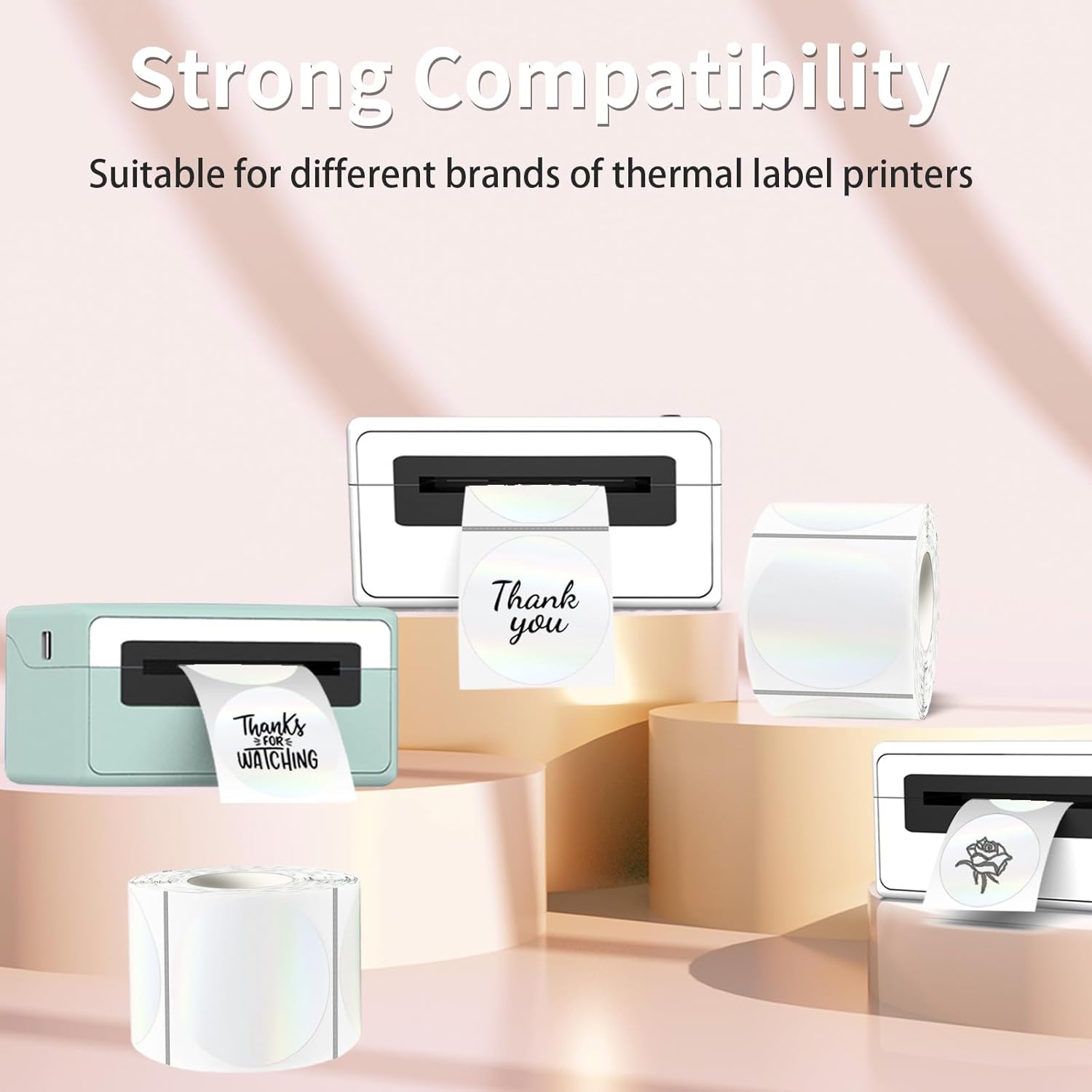 - Round thermal stickers: You will receive a roll of 2 x 2 inch Holographic thermal printer labels,with 300 labels per roll, to meet your needs daily life and work needs.