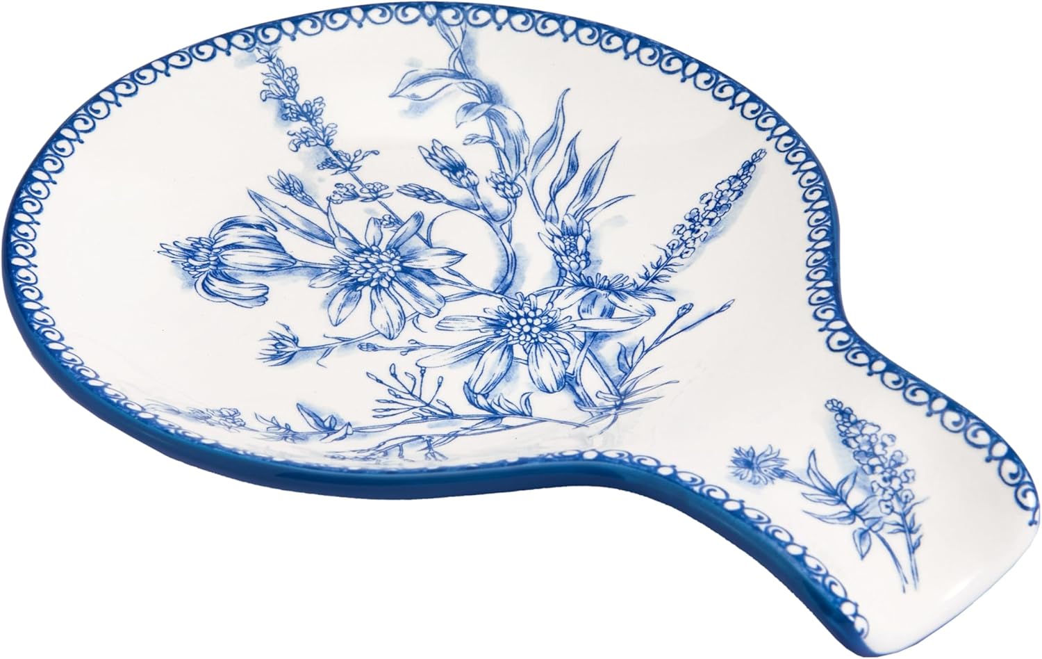 Bico Blue Garden Toile De Jouy Spoon Rest for Stove Top, Ceramic Spoon Holder for Kitchen Counter, Easy to Clean Coffee Spoon Rest Dishwasher Safe, Kitchen Cooking Utensil Rest for Ladles Spatula