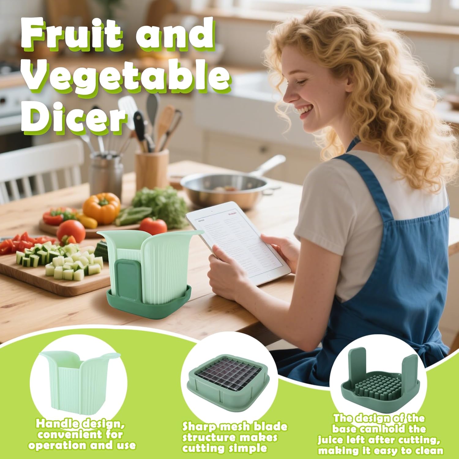 - Versatile and User-Friendly Design: The dicer features an adaptable design suitable for different sizes of fruits and veggies. Its spacious interior and ergonomic shape let you easily handle items from small potatoes to larger zucchinis. Whether you're a novice cook or a seasoned chef, this tool simplifies the dicing process, making it accessible for all kitchen skill levels