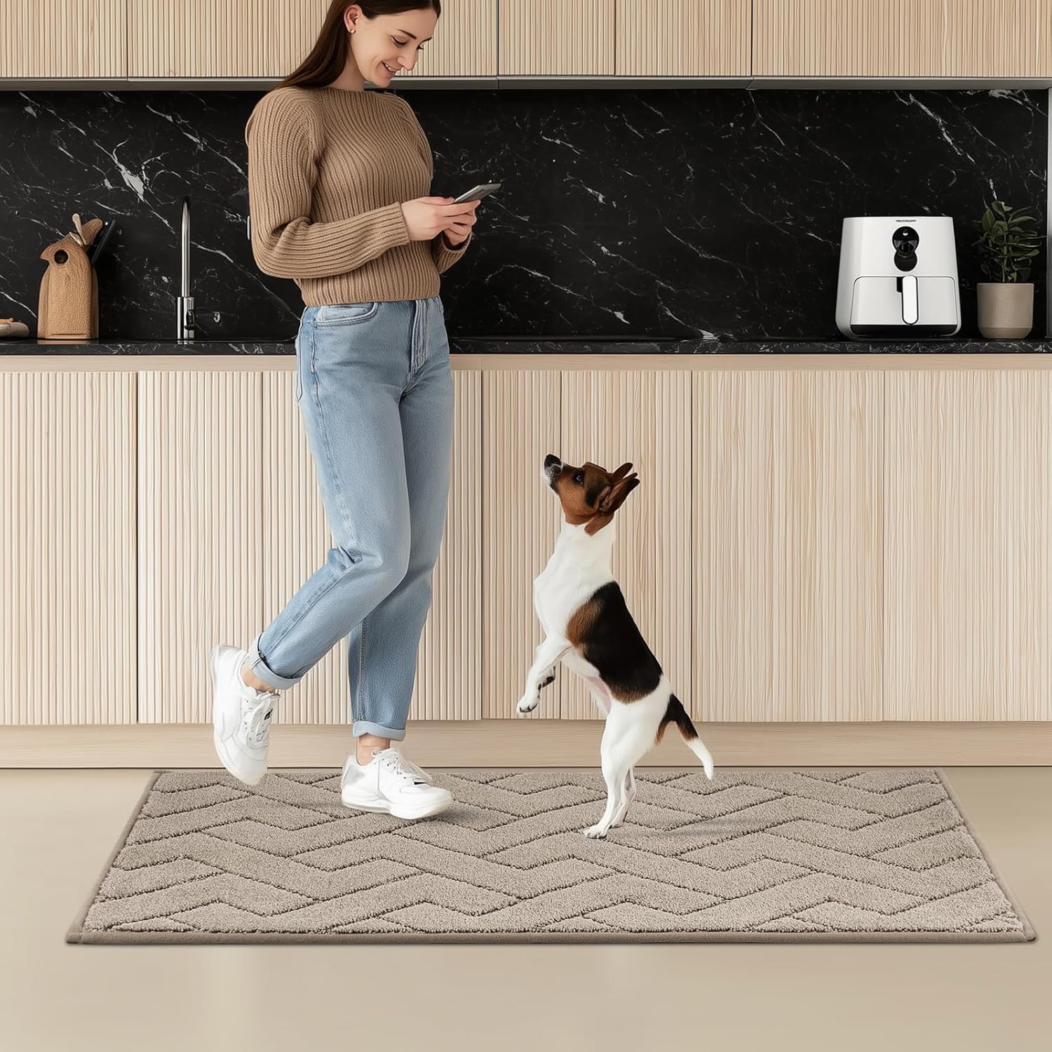 Machine Washable Kitchen Rugs 24" x 36", Non-Slip Kitchen Runner Rugs Mats for Floor, Absorbent Comfort Standing Mats for Kitchen, Sink, Laundry and Hallway, Taupe