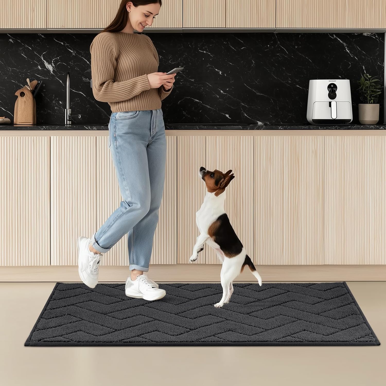 - [Easy Care & Waterproof Kitchen Floor Mat]: With countless polyester microfibers, our kitchen rugs effectively absorb spilled oil and water. The polyester washable carpet is designed to stand up to machine washing, it'll be easier to wash off the dirt.