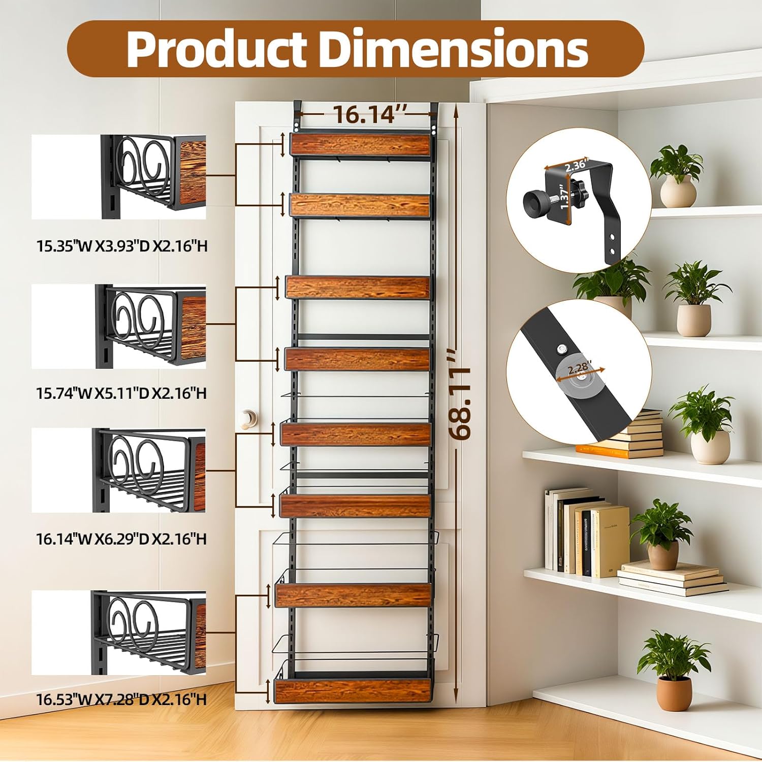 - Maximize Vertical Storage: Holds up to 8 layers of bottles and jars with this spacious over-the-door spice rack, saving cabinet space while keeping everything neatly organized and within easy reach