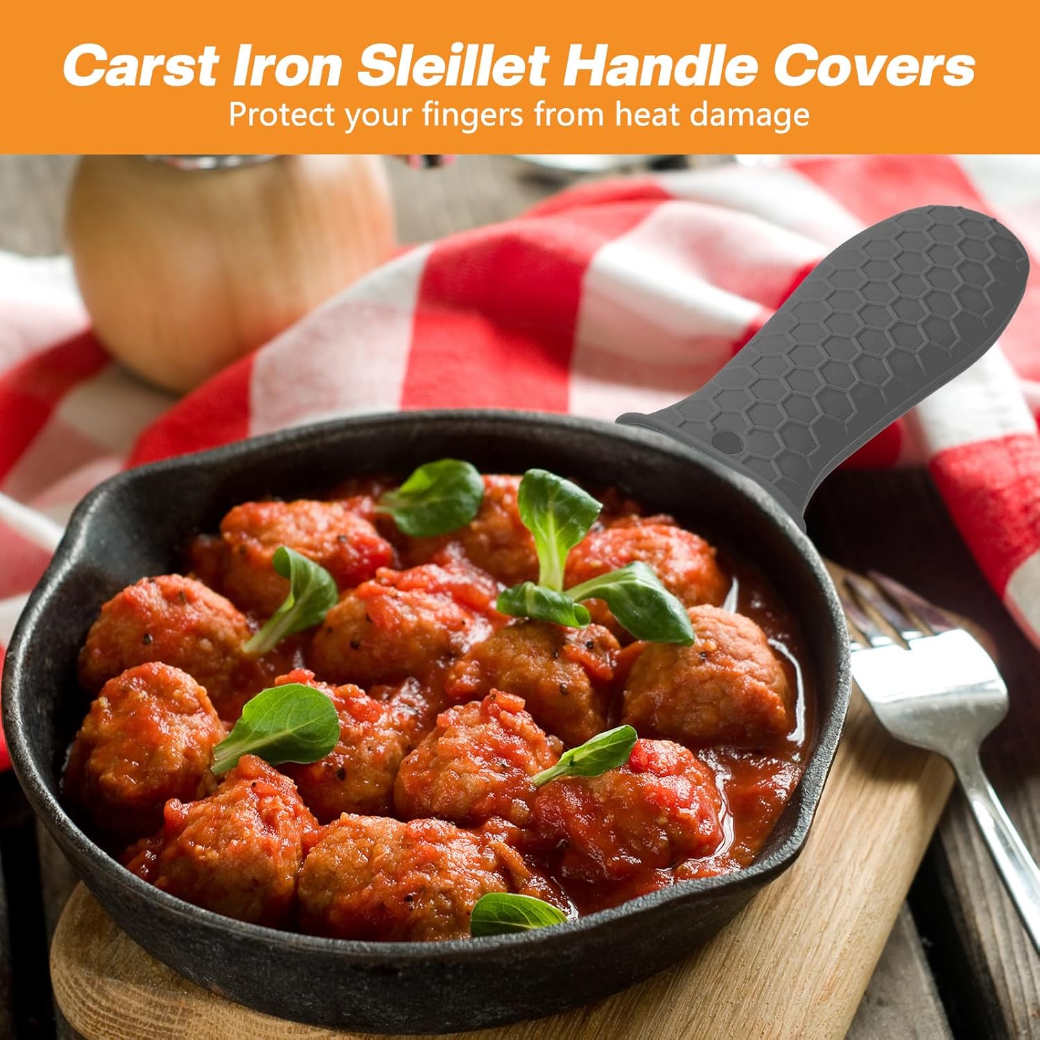 - Thoughtful Design with Anti-slip Texture: featuring a specially designed anti-slip texture and internal silicone ribbing, these cast iron handle sleeves effectively prevent slips and drops while handling hot cookware; This thoughtful design not only enhances safety but also allows for a confident grip, ensuring that you can maneuver hot pots and pans without fear of burns or accidents in the kitchen