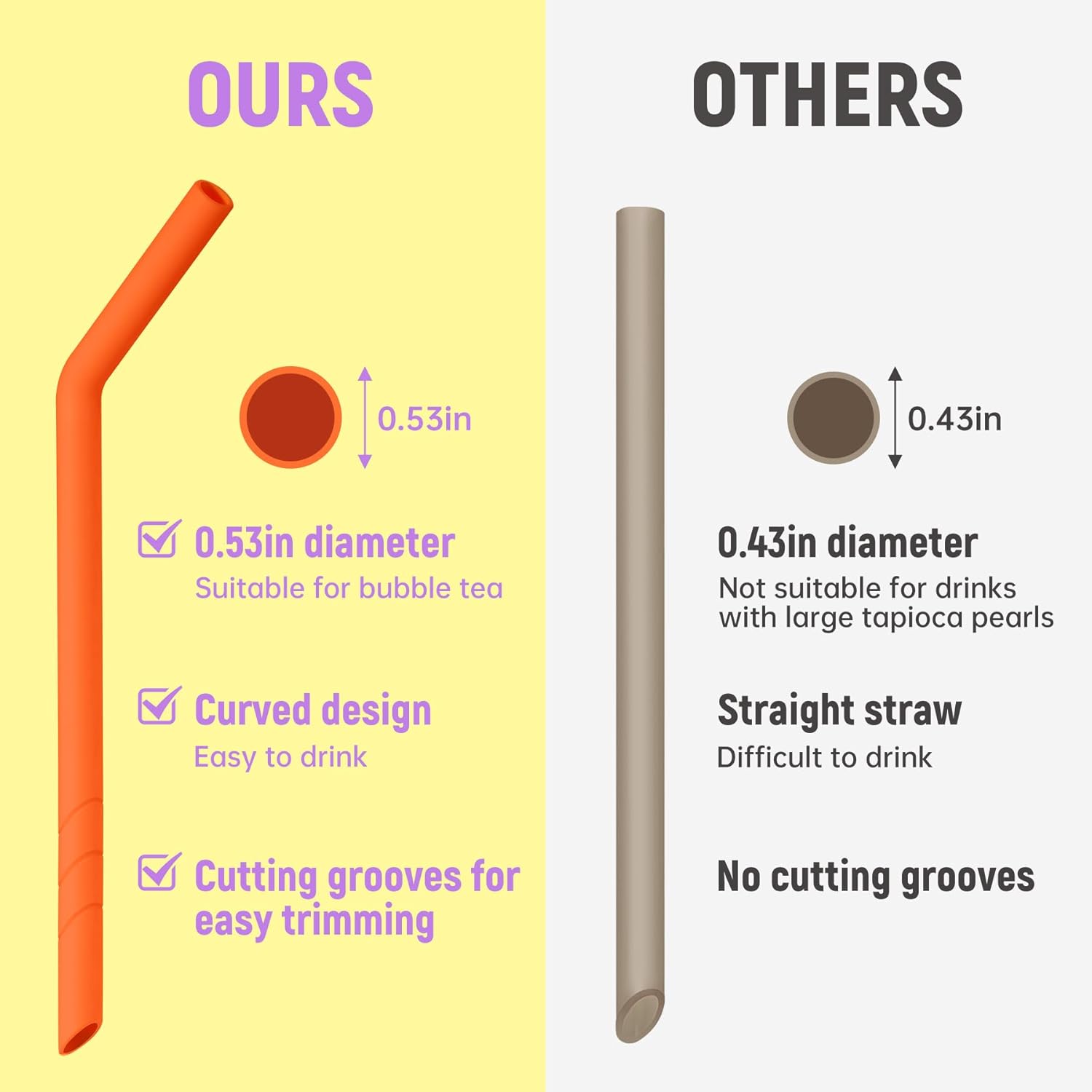 - Customizable Length: These straws can be tailored for your comfort, with pre-marked cutting lines at the base. Simply trim along the lines to achieve the perfect length for your cup or glass.