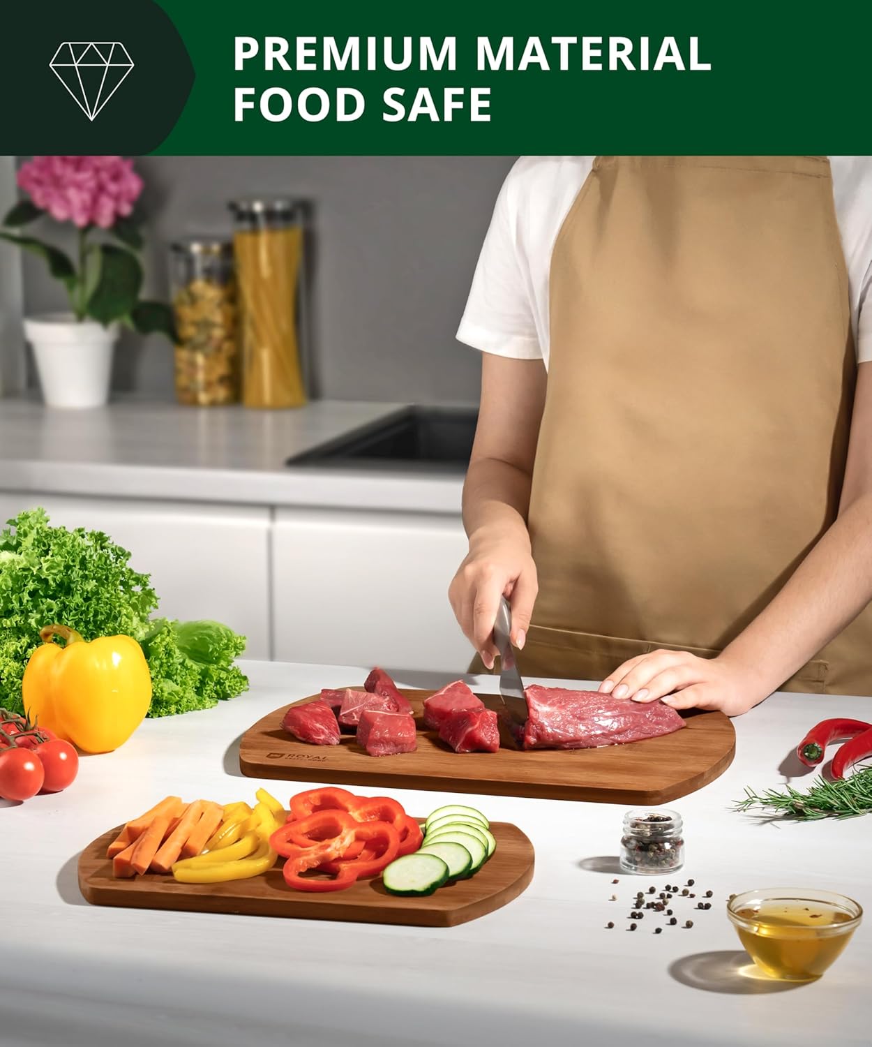 ROYAL CRAFT WOOD Cutting Boards for Kitchen - Wooden Cutting Board for Meal Prep & Serving, Non-Toxic Bamboo Chopping Board, Carbonized Bamboo Durable Charcuterie & Lightweight Serving Boards (2 pcs)