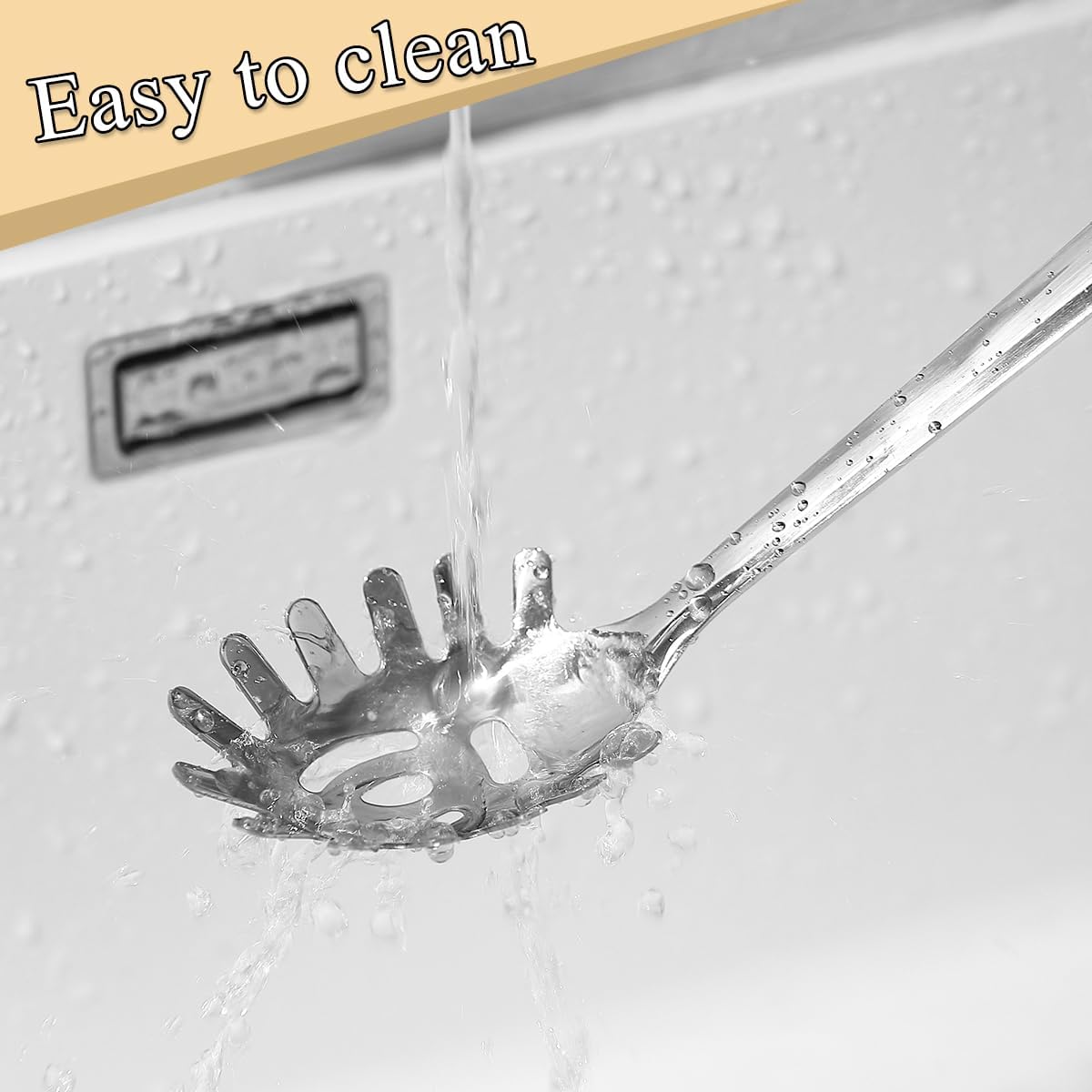- 4. Effortless Cleaning and Maintenance: This metal pasta fork is dishwasher safe, saving you time and effort in the kitchen. Simply place it in the dishwasher after use for a thorough clean, or wash it by hand with warm soapy water. Its smooth stainless steel surface resists stains and odors, ensuring it remains in pristine condition for years to come.