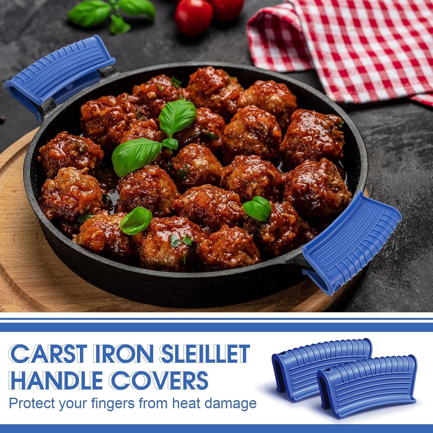 Patelai 4 Pcs Silicone Assist Hot Pan Handle Holder Pot Handle Covers for Cast Iron Skillets Holder Sleeve Nonslip Heat Resistant Pan Cover for Enameled Griddles Casserole Frying Cookware(Blue)