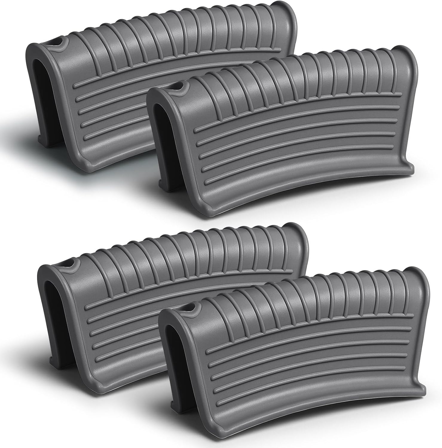 Patelai 4 Pcs Silicone Assist Hot Pan Handle Holder Pot Handle Covers for Cast Iron Skillets Holder Sleeve Nonslip Heat Resistant Pan Cover for Enameled Griddles Casserole Frying Cookware(Light Gray)