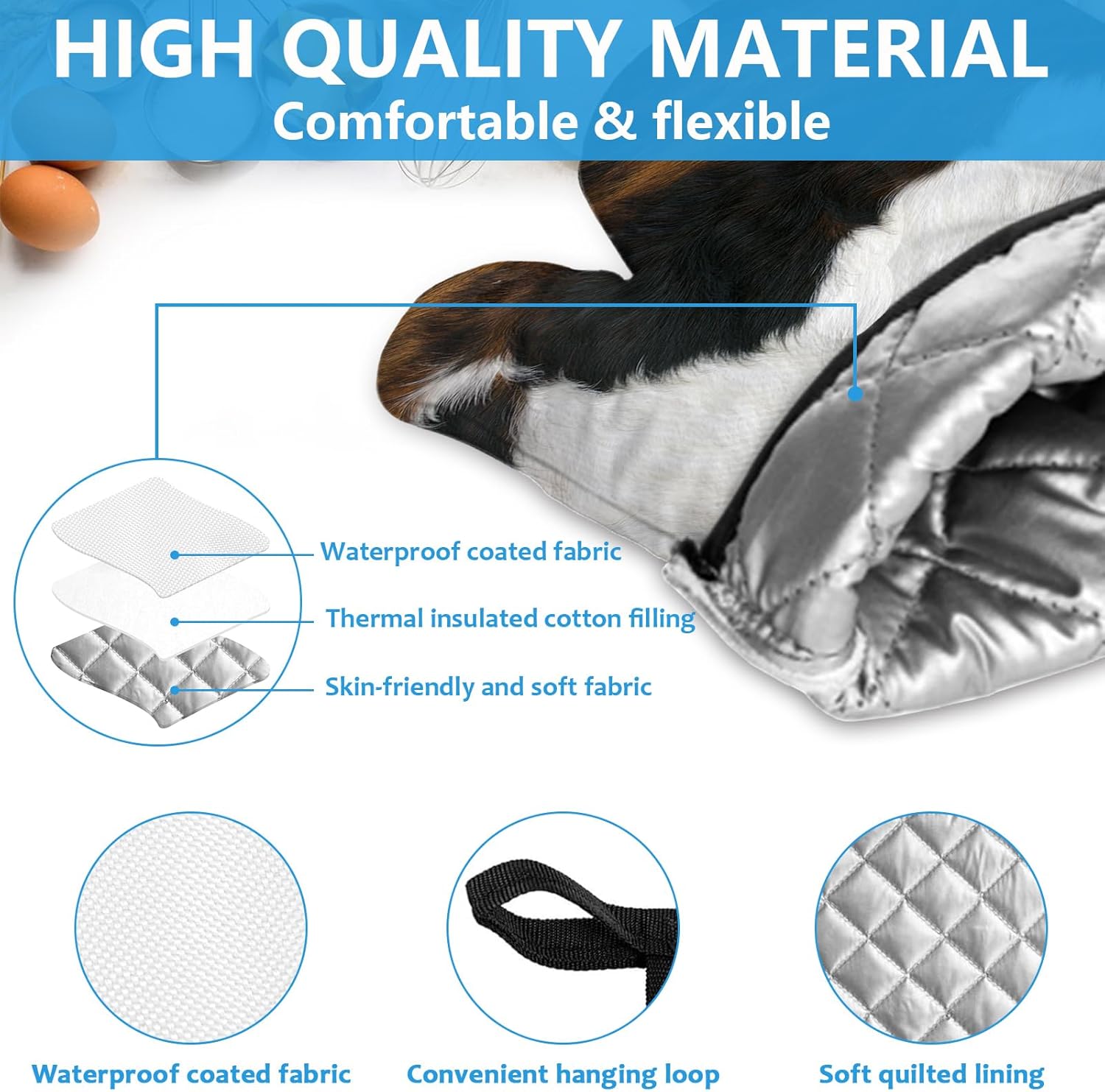 - 【4 PIECE SET SIZE】The oven mitts measure 11.6 X 7.1 inches and are suitable for both men and women. Extra long length protects wrists and forearms while cooking and baking. The pan mitt measures 8.7 X 8.7 inches, perfect for holding hot pots, pans, plates, bowls and trays.