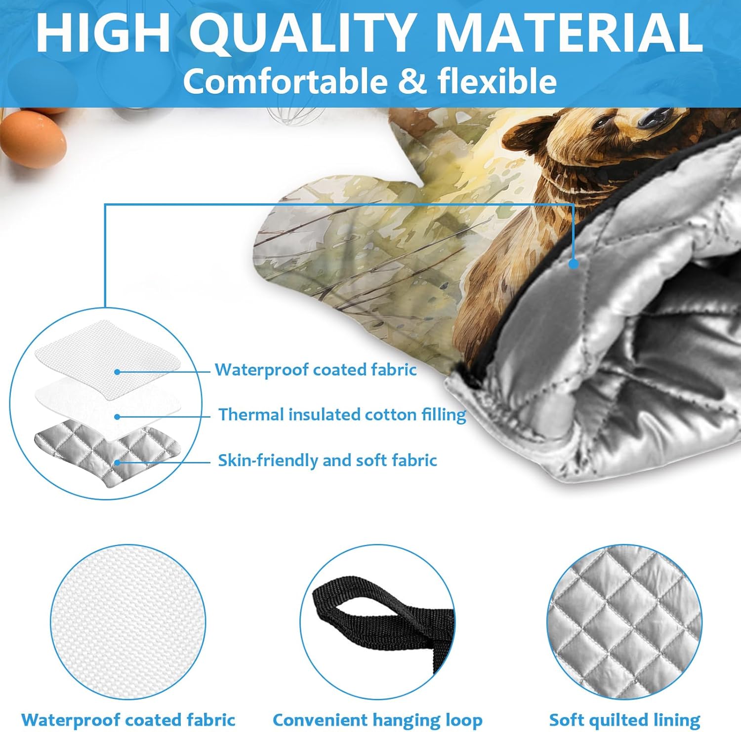 - 【NON-SLIP DESIGN】Kitchen insulating mats and oven mitts have a special non-slip texture on the surface and a soft, comfortable lining that provides a secure, non-slip grip when handling pots and pans, effectively preventing items from slipping off. The oven mitt is designed with a hanging loop for easy hanging.