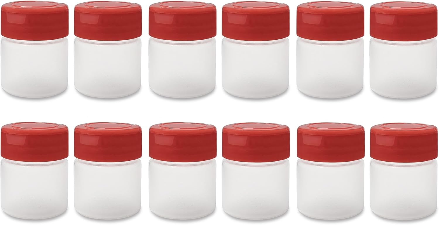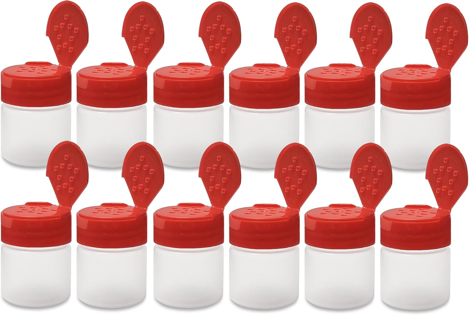 ljdeals 1 oz Plastic Spice Jars with Red Flip & Sift Caps – 12 Pack Empty Spice Bottles for Herbs, Seasonings, Powders, Camping, Travel, Kitchen, Restaurant Use – BPA-Free, Recyclable, Made in USA