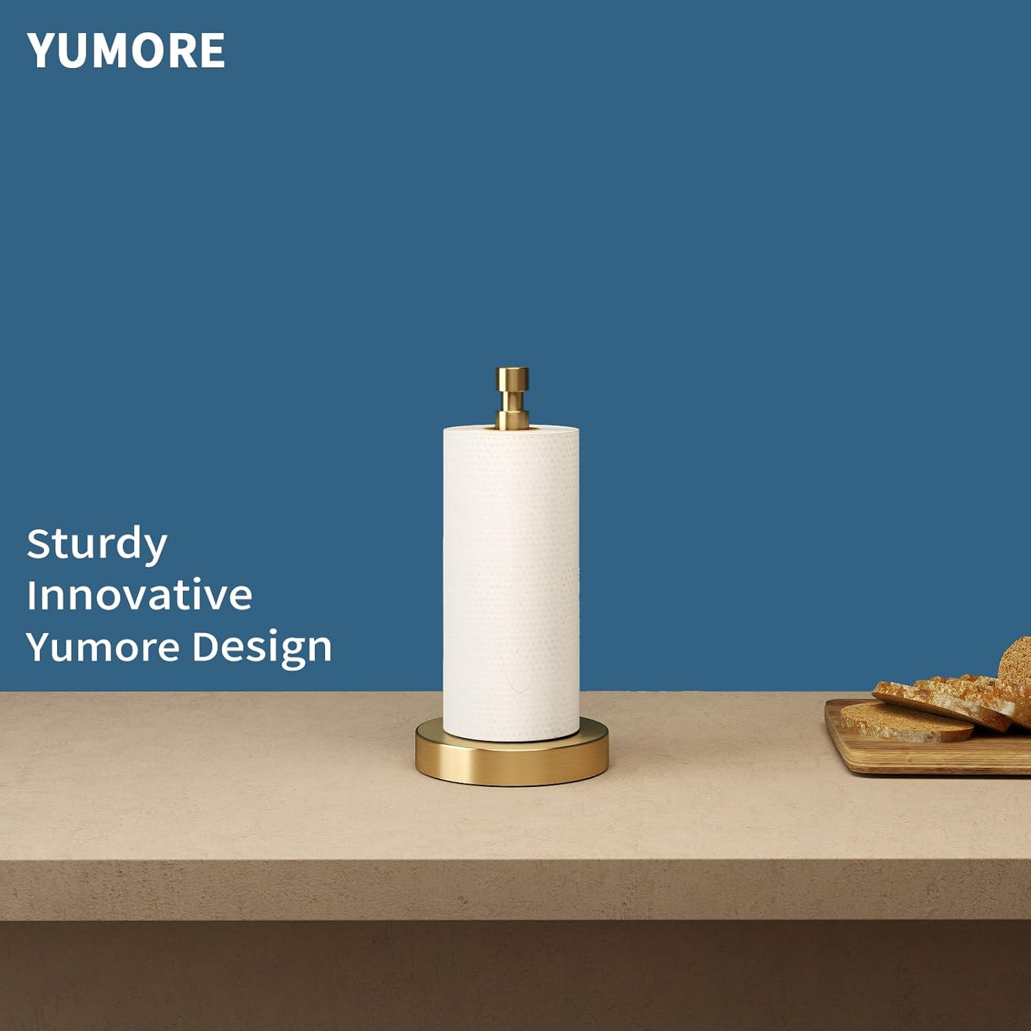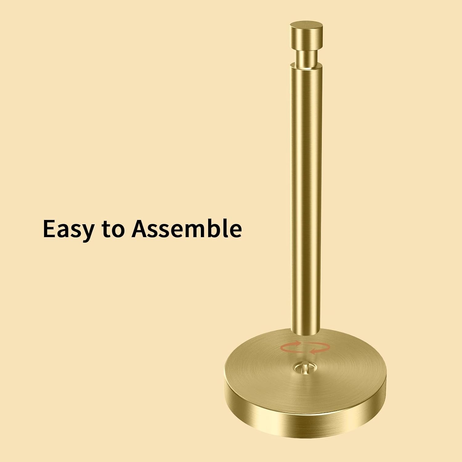 Paper Towel Holder Countertop, Paper Towel Holder with Weighted Base Non Slip, Standing Paper Towel Roll Holder for Kitchen Bathroom, Easy One-Handed Operation, Stainles Steel (Gold)