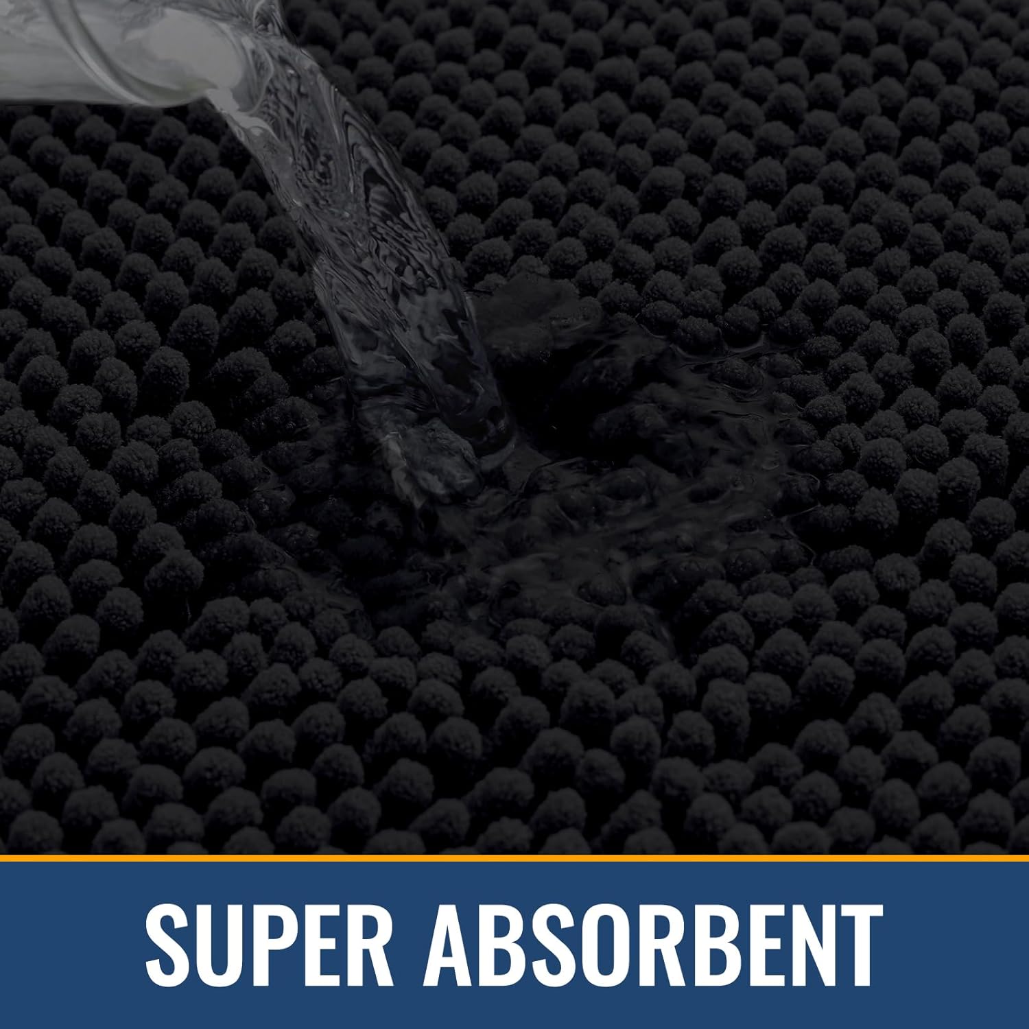 Arotive Bathroom Rugs 59x24, Extra Soft Absorbent Shaggy Chenille Bath Rugs, Machine Washable Rubber Backing Non-Slip Bath Mats for Bathroom Floor Tub and Shower, Home Decor Accessories, Black