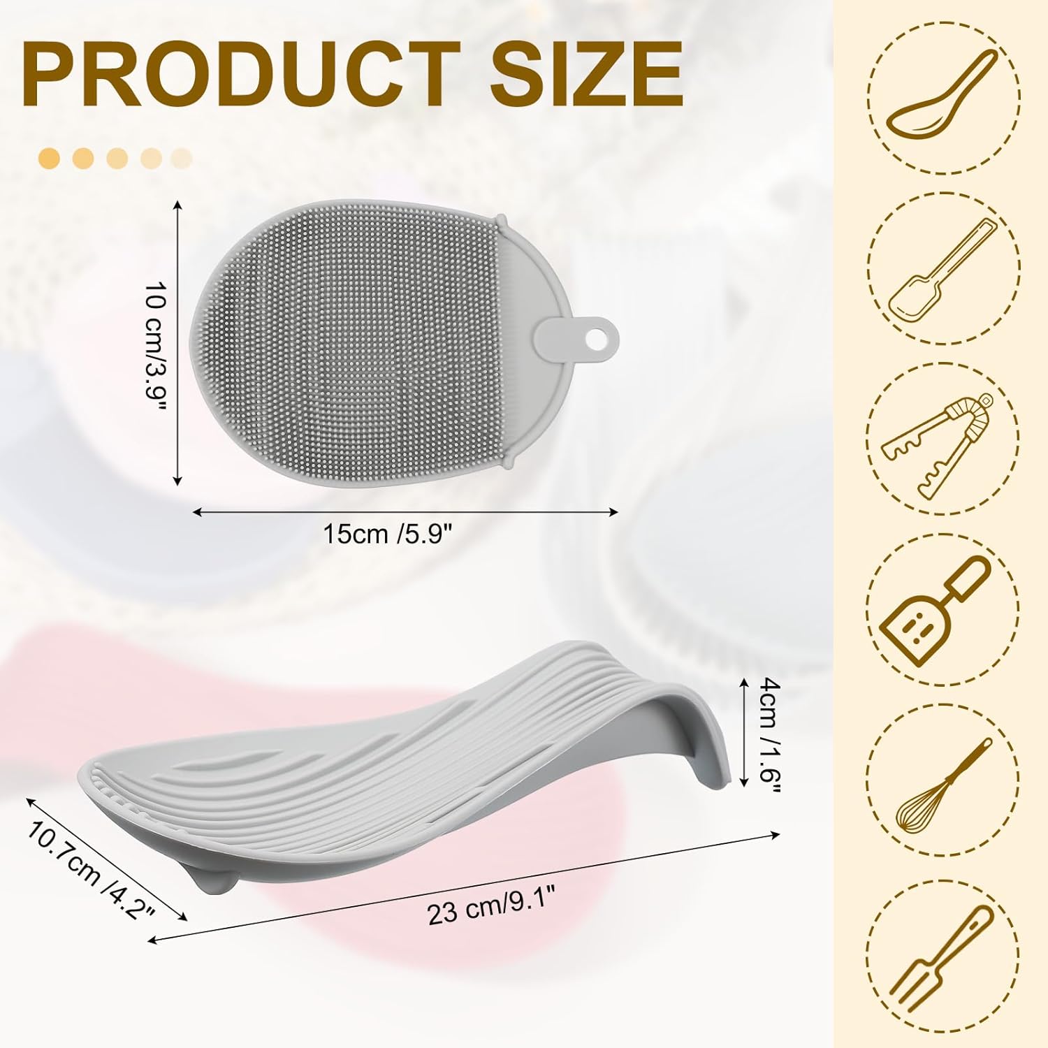 uxcell 1 Set Silicone Spoon Rest for Stove Top, Silicone Spoon Holder for Cooking Spatula, Ladle, Brush Light Grey/Grey