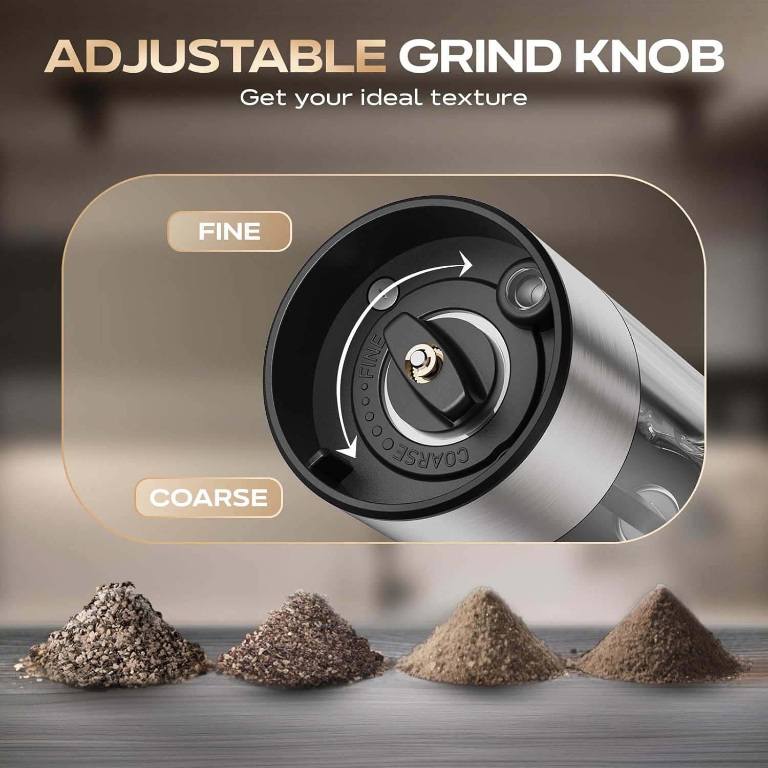 - 【Adjustable Grind + See-Through Design】Twist the bottom knob for your perfect texture—nails steaks, salads, everything in between, elevating every bite. 360° clear container shows spice levels at a glance. Wide opening makes refills easy, cleaning fast