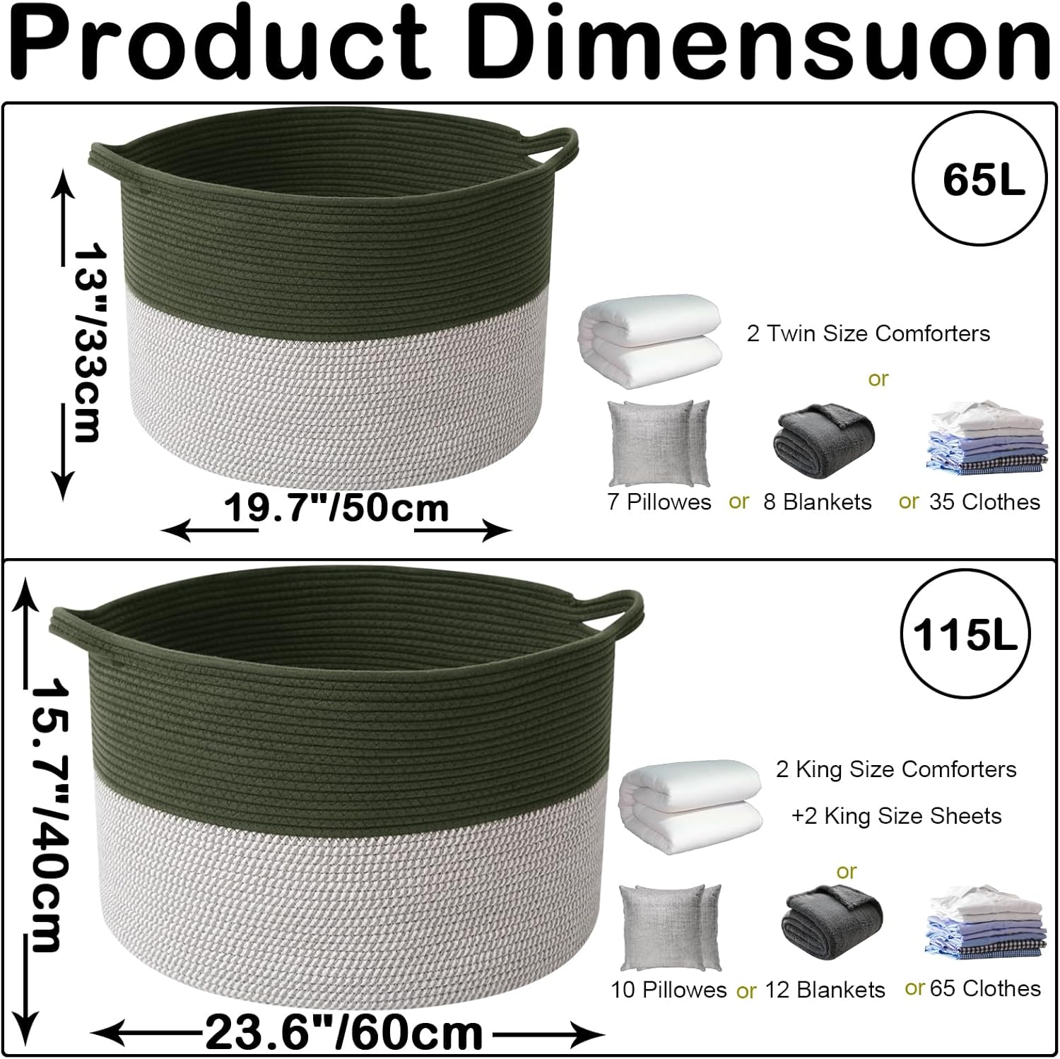 - 【Large Laundry Blanket Basket】19.7"L x 19.7"W x13"H Laundry basket for organizer,65L rope large cotton blanket basket with handle.Please allow 1 - 2 cm (0.4" - 0.8") for deviations due to folded transportation