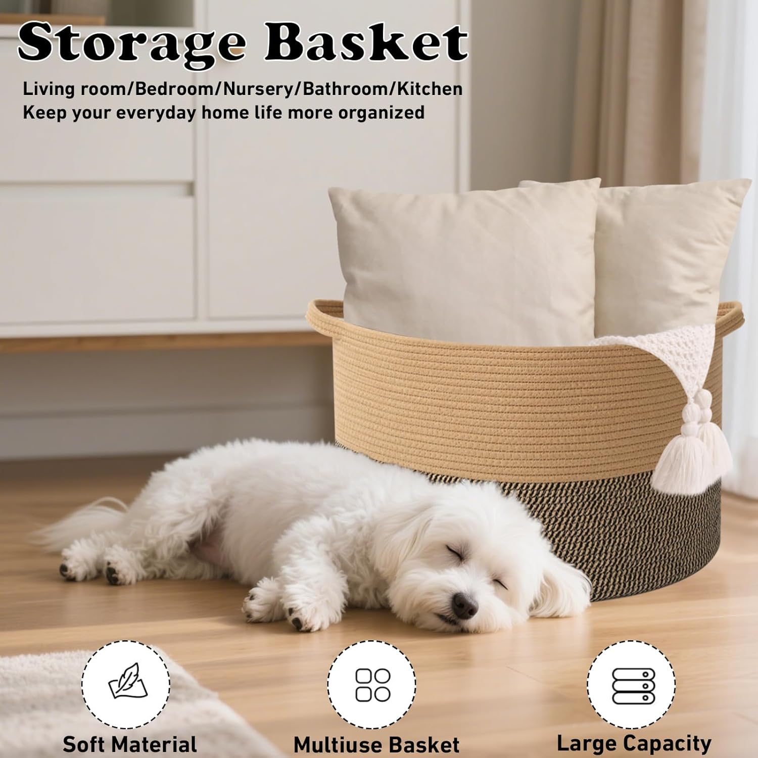 - 【Sturdy Handle Design】The two built-in handles are sturdy, easy to carry or move and allow you to pack up their alone. The woven basket is made of cotton rope, which is soft yet holds its shape well.No need to worry about scratching clothes or hurting skin, suitable for families or pets