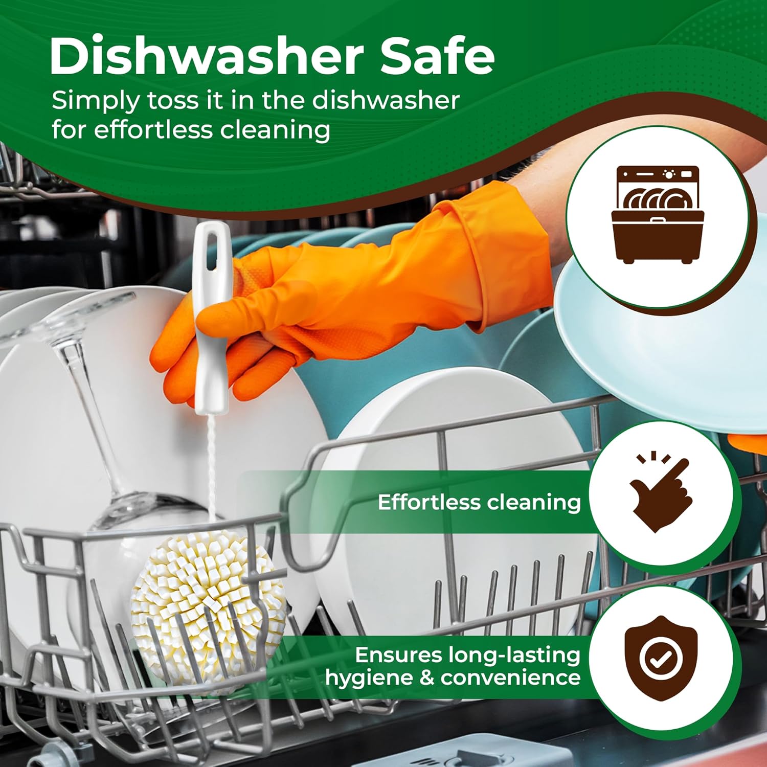 - DISHWASHER SAFE & HYGIENIC - While your delicate glassware is not dishwasher safe, this brush is, simply toss it in the dishwasher for effortless cleaning, ensuring long-lasting hygiene and convenience.