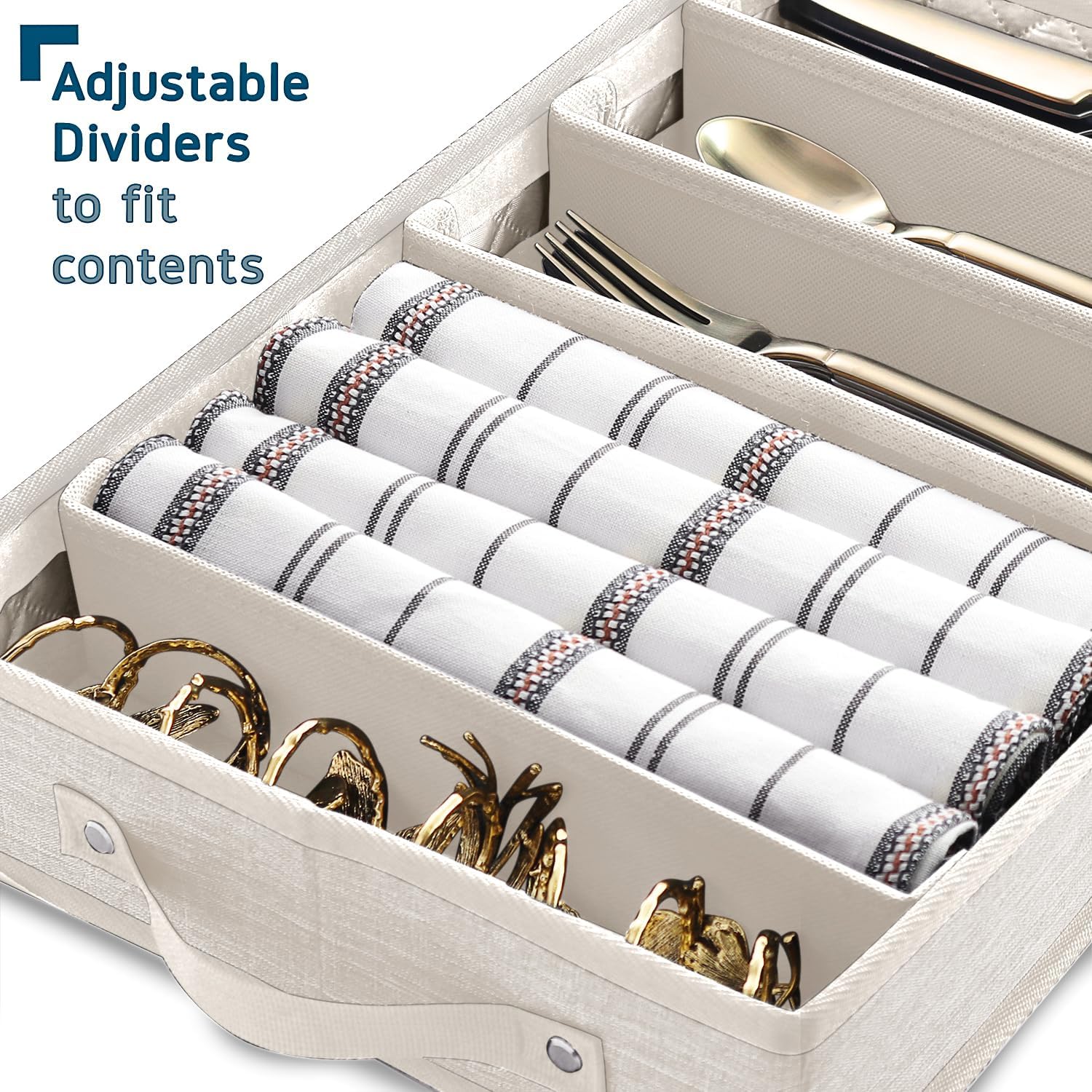 Flatware & Utensil Storage, Durable Silverware Storage Box with Padded Dividers, 5 Compartment Flatware Storage Case, Silverware Case with Handles, Protects and Organizes Cutlery, Cream